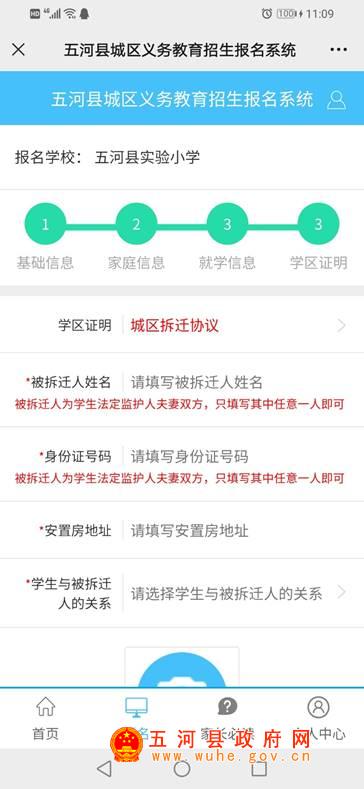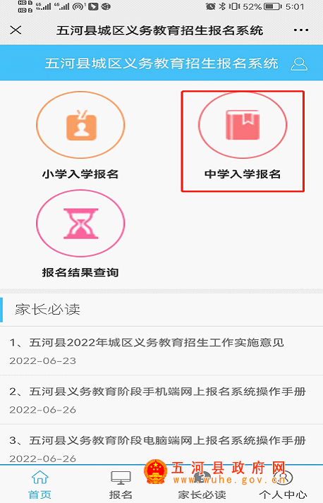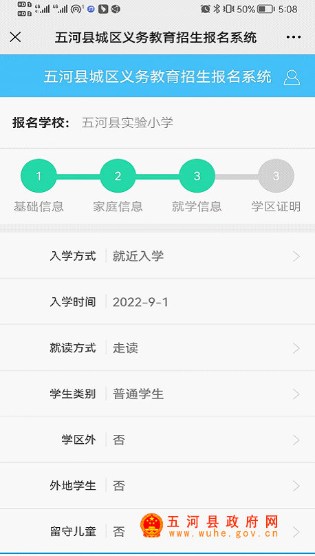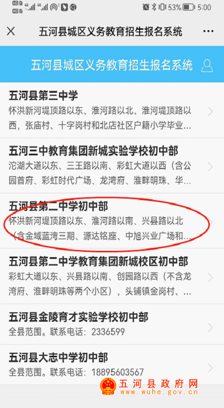 五河县2022年城区义务教育招生报名系统手机端操作流程