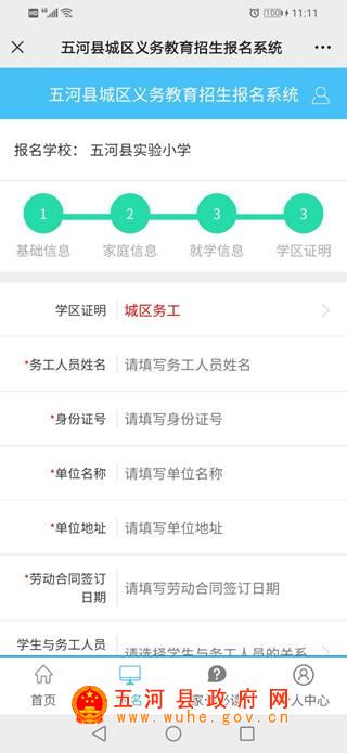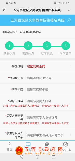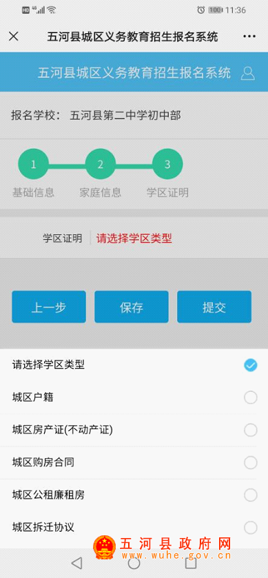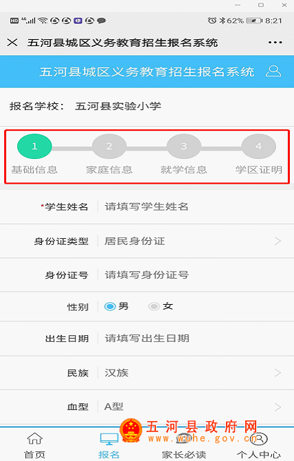 4.1、中学报名:中学报名分为公立中学报名与民办中学报名两类,公立学校报名需填写基础信息、家庭信息、学区证明三大类;民办学校只需填写基础信息和家庭信息。