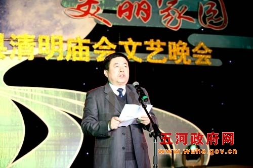 昨晚,县体育馆里春意浓浓,掌声不断,一场旨在反映五河变化、推介五河发展环境的精彩演出——“和谐五河,美丽家园”清明文艺晚会在这里隆重举行。县委书记、县人大常委会主任胡启望同志发表了热情洋溢的致辞,安徽电视台著名主持人尹珏等主持晚会。