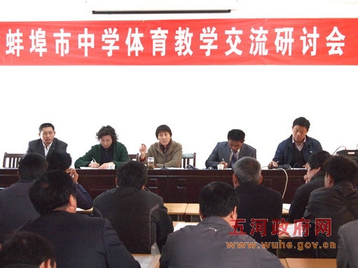 11月19日,蚌埠市中学体育与健康教学交流研讨会在五河县双庙职业中学召开,安徽省教科所体育教研员江玲,蚌埠市教科所体育教研员陈侠,蚌埠二中体育特级教师傅玲,市区及怀远、固镇两县的重点中学的体育教师,五河县教研室主任刘永生、体育教研员张辉、各中学的校长和体育教师100余人参加。