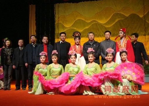 在黄梅戏专场演出开始前,县政协副主席江志刚致欢迎词,江志刚在致词中首先代表县四个班子对宿松县黄梅戏剧院的到来表示欢迎,向给予本次演出大力支持的五河祥源投资开发有限公司表示感谢,江志刚在致词中指出,黄梅戏是安徽的主要剧种和文化名片,省委、省政府不久前召开了建设文化强省动员会。发出了要“打好徽字牌,唱响黄梅戏,舞红花鼓灯”的动员令。黄梅戏许多经典剧目和著名唱腔段多年来一直深受全国人民的喜爱。五河民歌在传承发展中也深受黄梅戏艺术的影响,兼收并蓄,汲取了丰富的营养。希望五河和宿松两县以这次演出为契机,开启两县文化的交流的新篇章,让黄梅戏和五河民歌相互交融,相互借鉴,相互学习,共同发展繁荣。五河祥源投资开发有限公司总经理王怀清也在演出开始前讲了话。