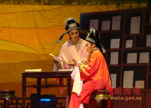 为活跃清明庙会期间人们的文化生活,4月5日晚,由县政协、五河祥源投资开发有限公司主办,县文广体新局、县政协书画社承办的“祥源之春”黄梅戏专场演出在我县红旗影剧院隆重举行。县政协主席刘光、副主席江志刚、张茂飞和1000多名来自县直机关、各个乡镇及社会各界的观众有滋有味的品尝着来自黄梅戏故乡——宿松县黄梅县戏剧院演出的大型古装戏《梁山伯与祝英台》。