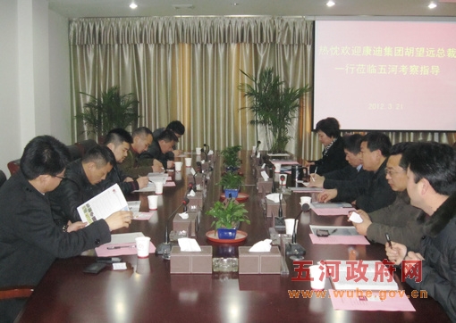 3月21日上午,浙江康迪集团总裁胡望远一行来我县考察投资环境。县领导胡启望、周学保接待了考察团一行,王家渠、刘彦璀、马昌龙,县经济开发区、沫河口工业区及县人大办、县住建局、县招商局等单位主要负责人陪同考察并出席座谈会。