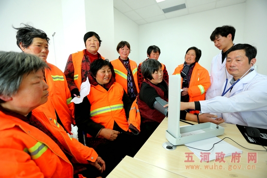 2月26日,五和医院的医护人员忙着给环卫工人体检。自当日开始,该院为城区200多名环卫工人提供免费体检服务,为每位环卫工人建立健康档案,并根据每个人的身体状况,进行健康评估,合理指导他们就医治疗和健康保健。