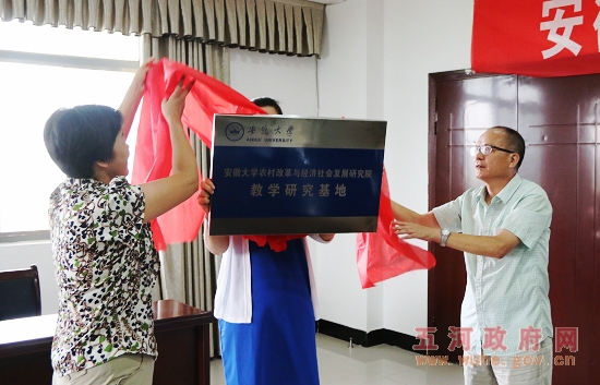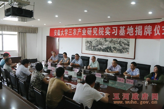 8月12日,安徽大学三农产业研究院实习基地授牌揭牌仪式在县政府第一会议室举行,安徽大学三农产业研究院院长张德元一行,县委常委、副县长丁云红及小圩镇、县农委、县招商局等相关单位负责同志参加了仪式。