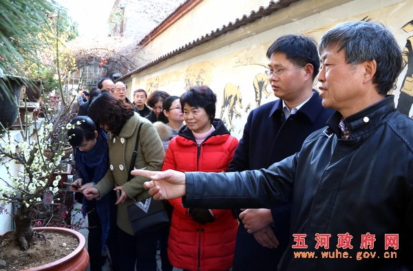 2月18日,五河县第三届梅花展在九和收藏馆开展,二十余个品种近百株梅花争奇斗艳,尽情舒展丰姿。县委常委、宣传部长张元永,县人大常委会副主任刘彦璀等出席开展仪式。
