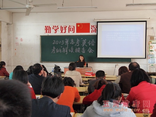 为总结交流高考经验,及时了解高考信息,增强备考工作的针对性和有效性,4月14日,教育局在五河二中召开了“2013高考考纲解读报告会”,来自全县各高中校长及高三教师代表参加了此次活动。