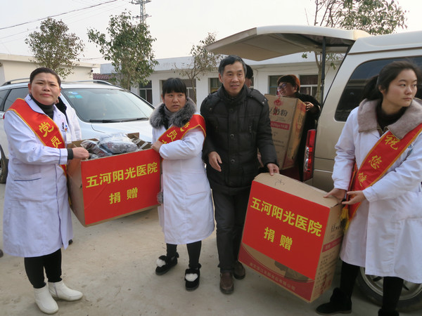 为让患重病的家庭过上一个祥和、欢乐的春节,1月17日下午,五河县阳光医院党员志愿者在县民政局相关负责人的陪同下,分别前往双忠庙镇敬老院、訾湖敬老院和6户患重大疾病的家庭走访慰问,向他们致以节日的问候,并送去慰问金和米、面、油等慰问品。