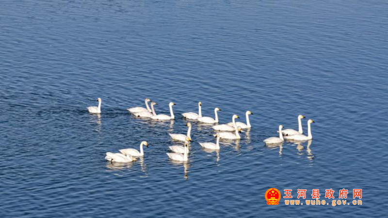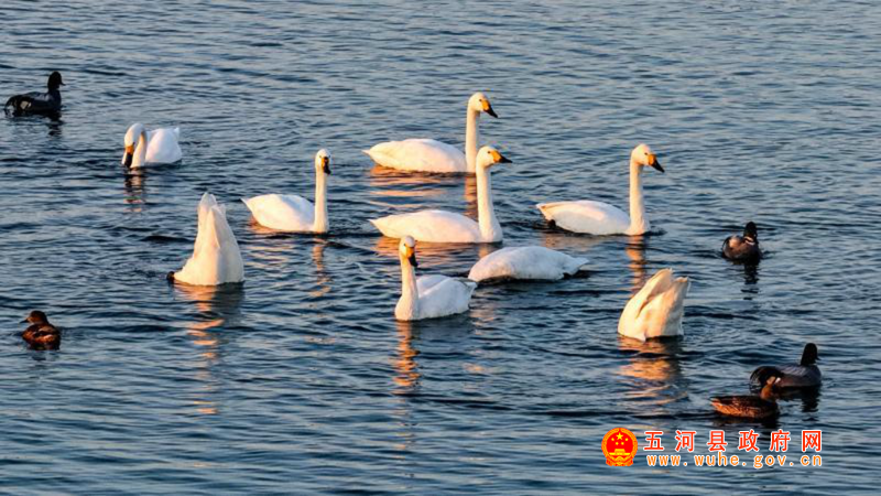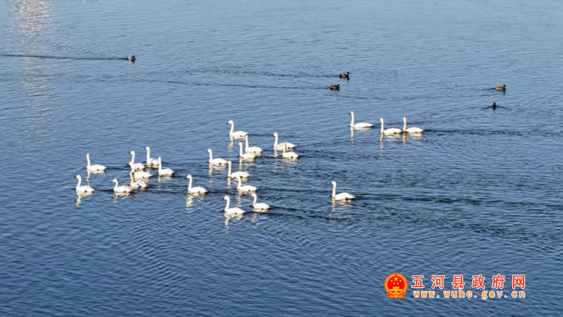 1月22日,在安徽省五河县天井湖,100多只大白天鹅和黑天鹅、斑头雁等越冬候鸟自由游弋、觅食、栖息,美丽的身影倒映在波光粼粼的水面上,与周边的风景交相辉映,勾勒出一幅生机勃勃的生态画卷。