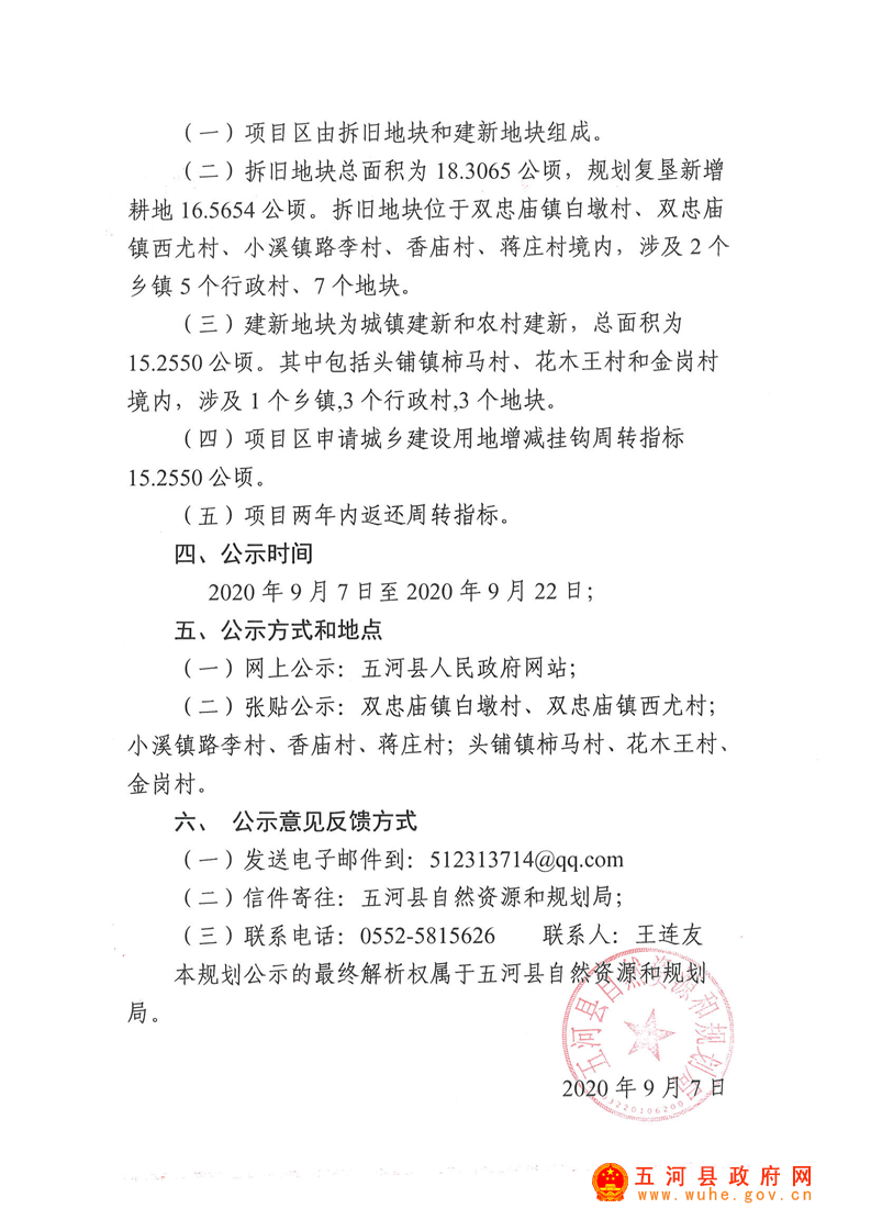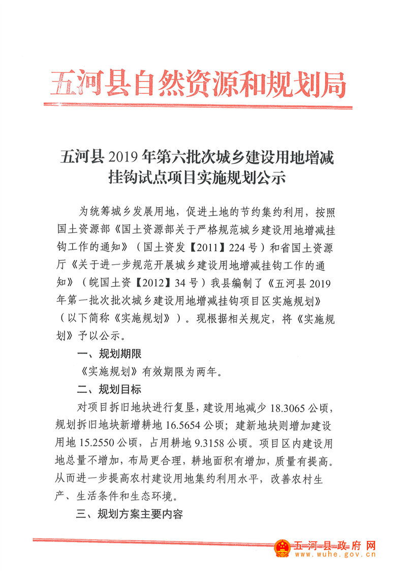 五河县2019年第六批次城乡建设用地增减挂钩试点项目区实施规划公示