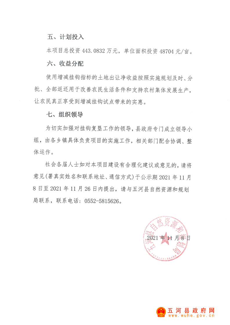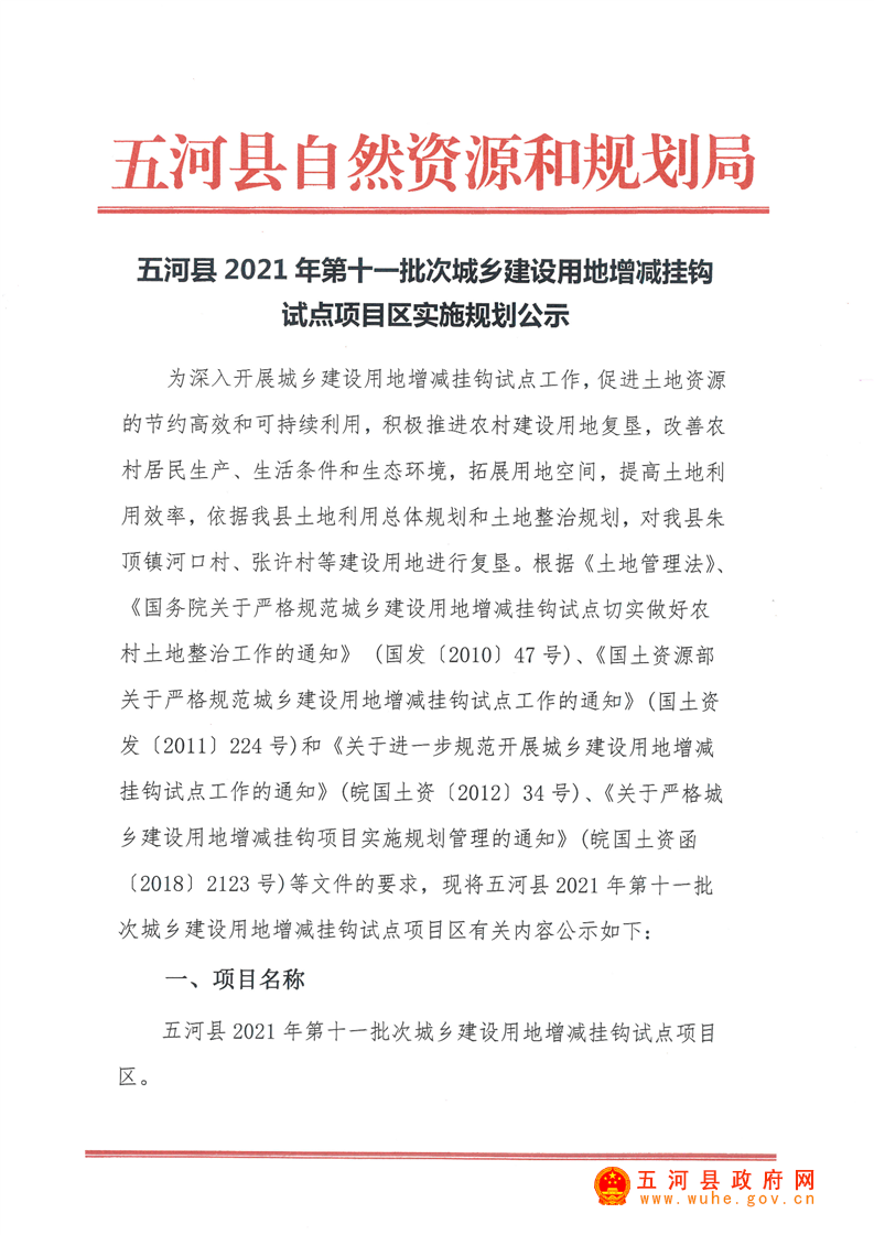 五河县2021年第十一批次城乡建设用地增减钩挂试点项目区实施规划公示