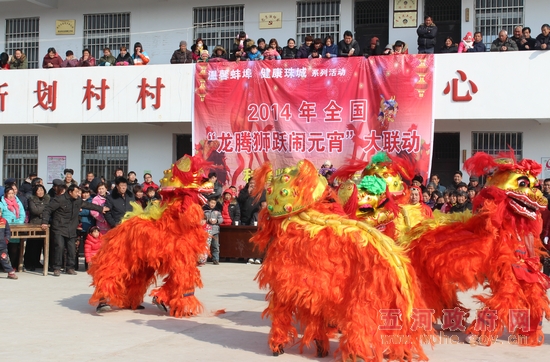 2月12日,以母子情谢党恩、和谐临北、狮闹元宵为主题的“全国龙腾狮跃闹元宵大联动”表演在临北回族乡新划村村部展开。