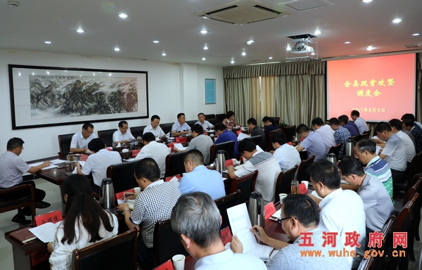 8月9日下午,县委书记吴道俊在县委常委会议室主持召开脱贫攻坚调度会,常言龙、傅克、刘士清、魏献洋、杨艳出席会议。