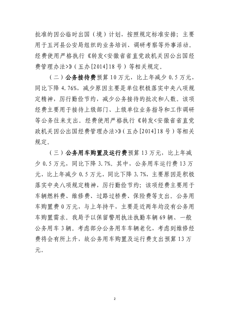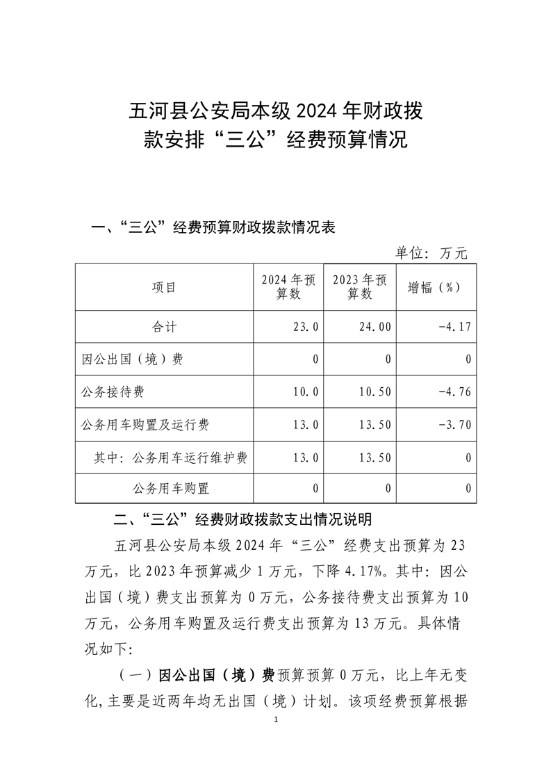 2024年五河县公安局本级单位三公经费安排情况 |