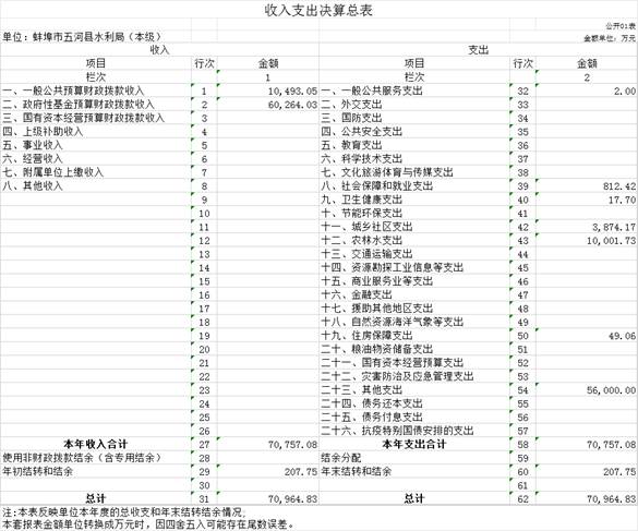 五河县水利局本级是五河县政府工作单位,为正科级。主要