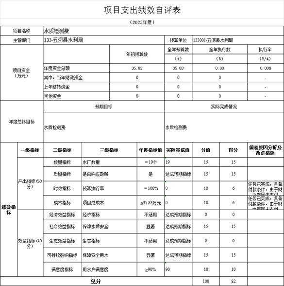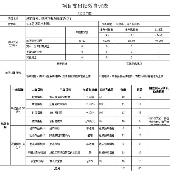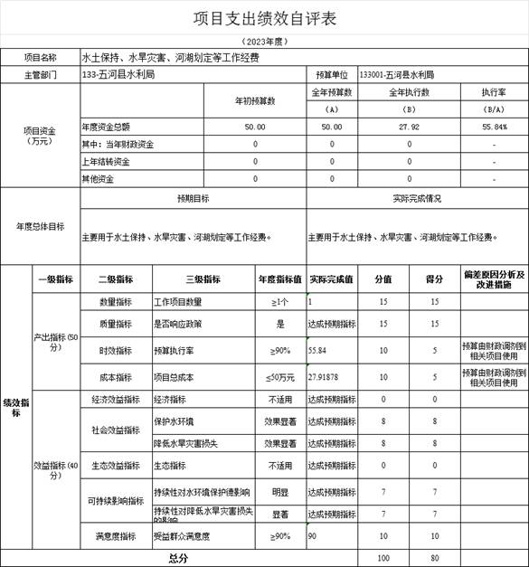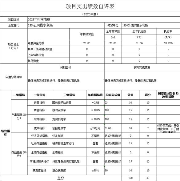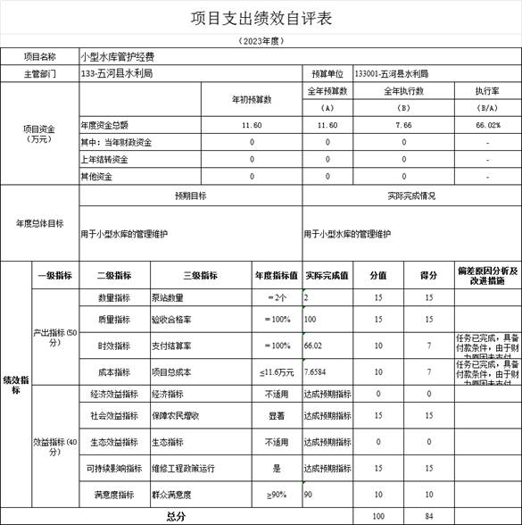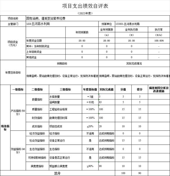 国有涵闸、灌溉泵站管养经费项目的《项目支出绩效自评表》