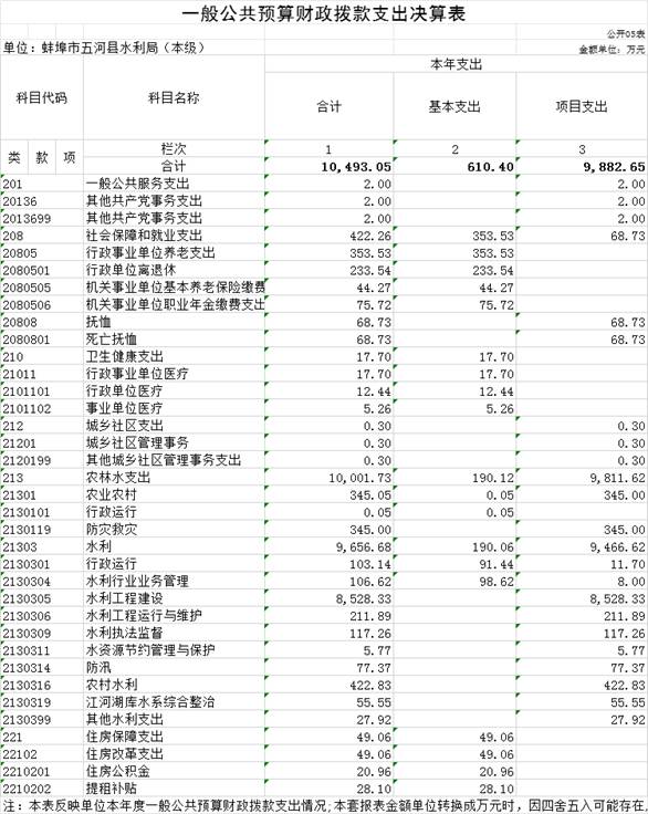 注:五河县水利局没有使用国有资本经营预算安排的支出,故本表无数据。