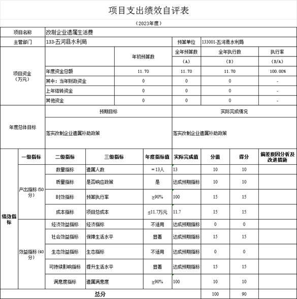 我单位在2023年度单位决算中反映国有涵闸、灌溉泵站管养经费项目绩效自评综述和所有项目支出绩效自评表(涉密项目除外)。