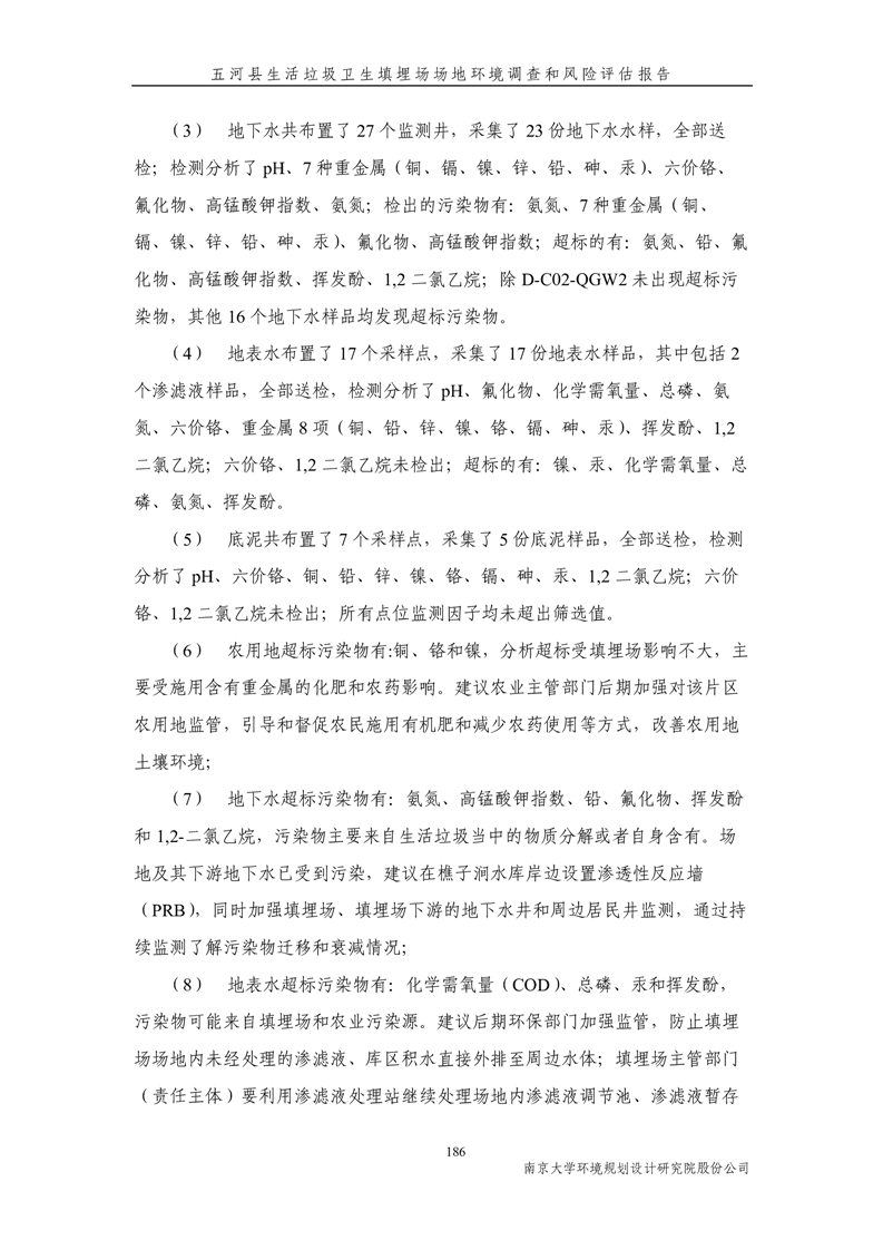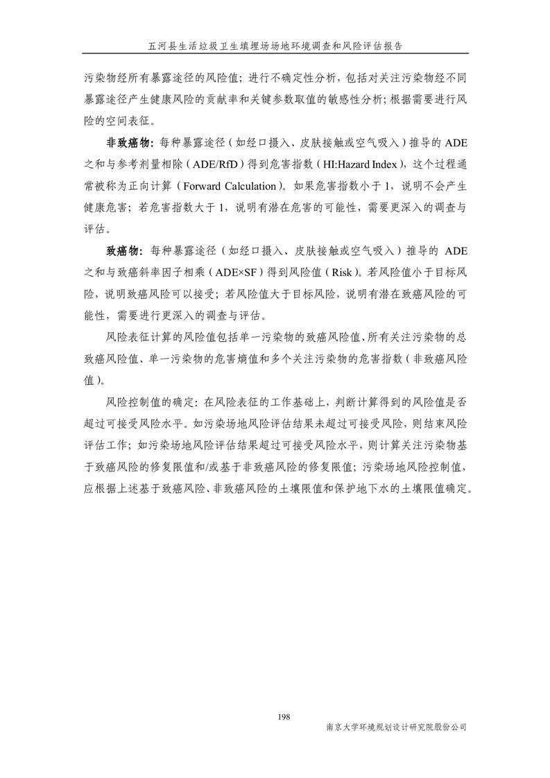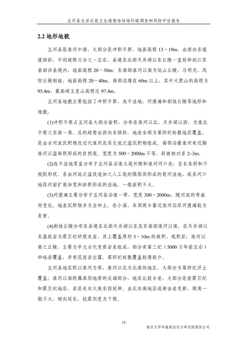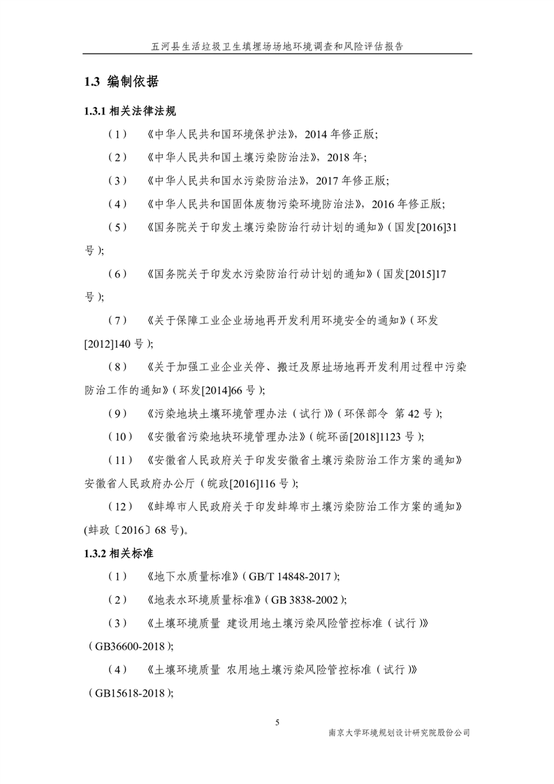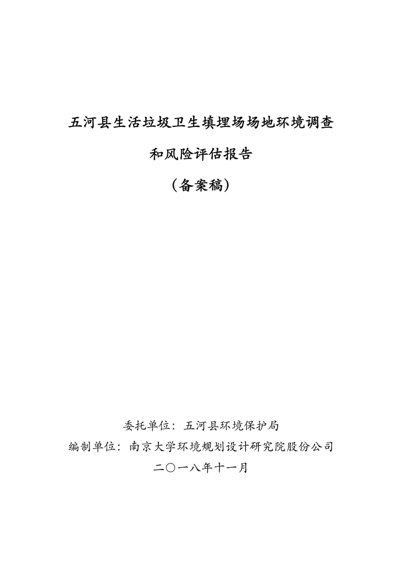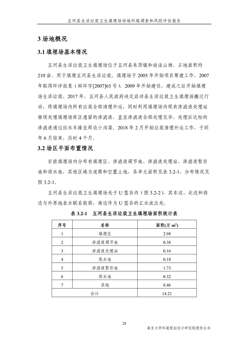 五河县生活垃圾卫生填埋场场地环境调查和风险评估报告