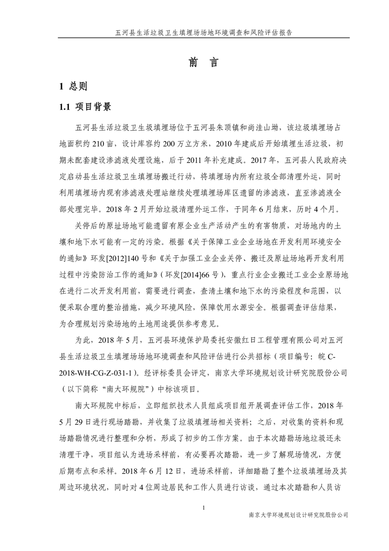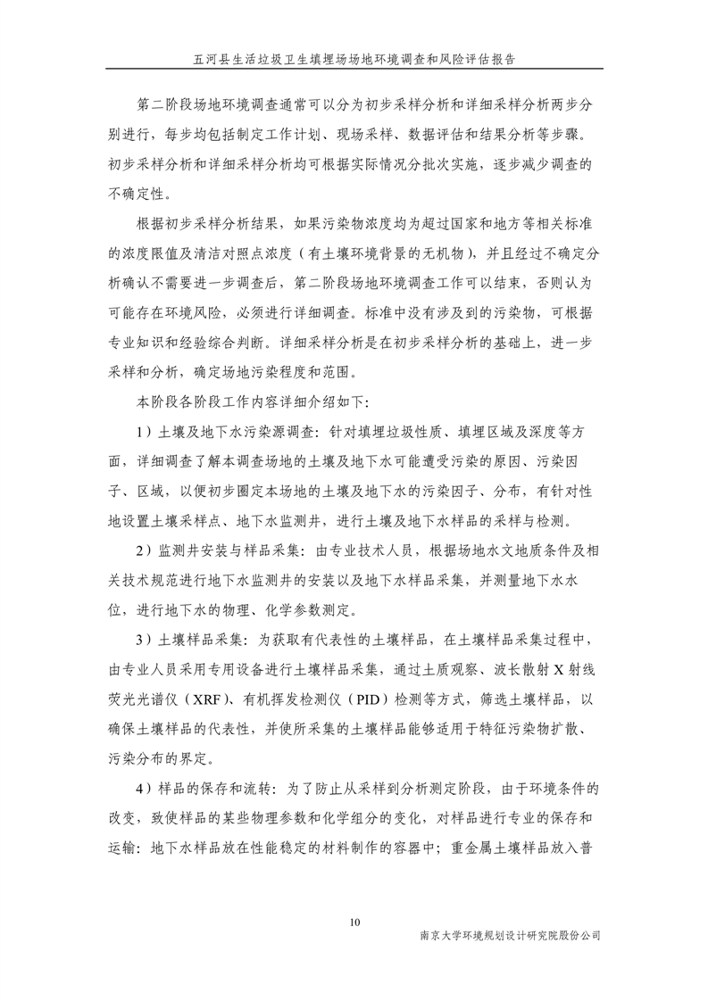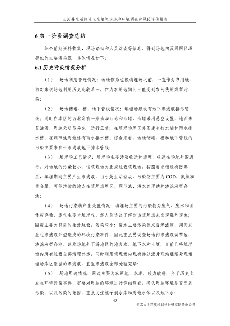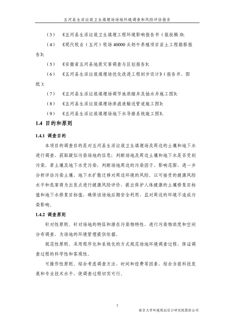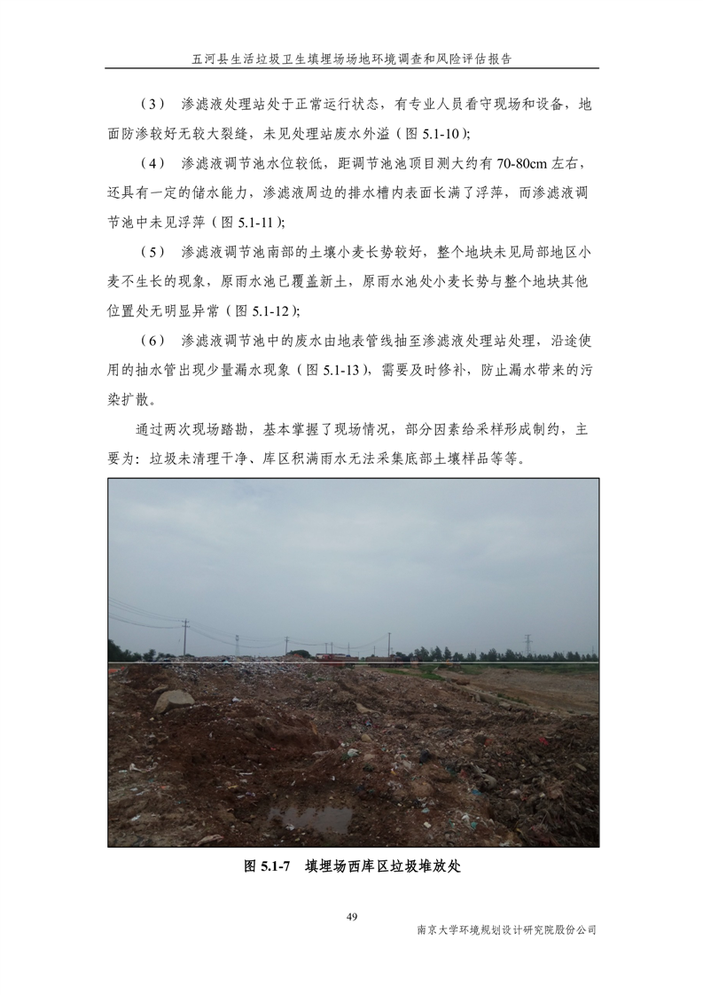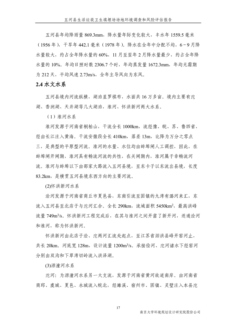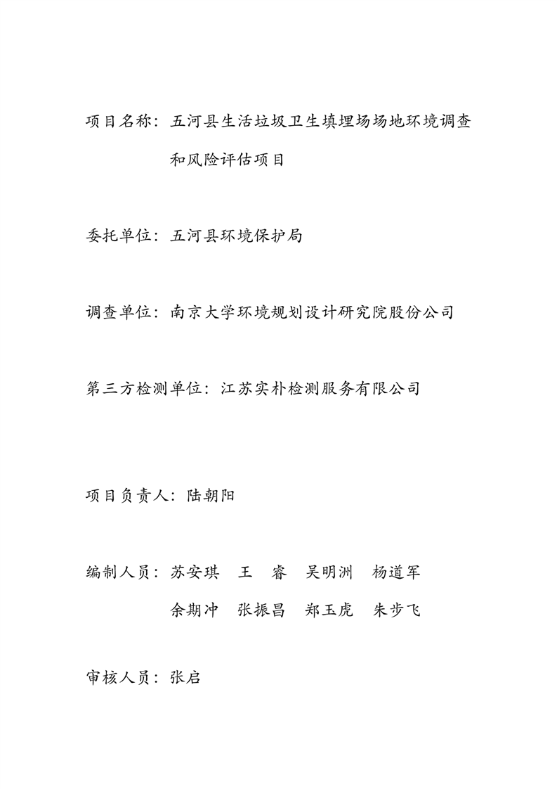 五河县生活垃圾卫生填埋场场地环境调查和风险评估报告