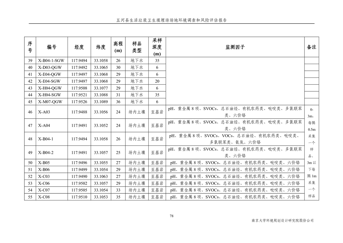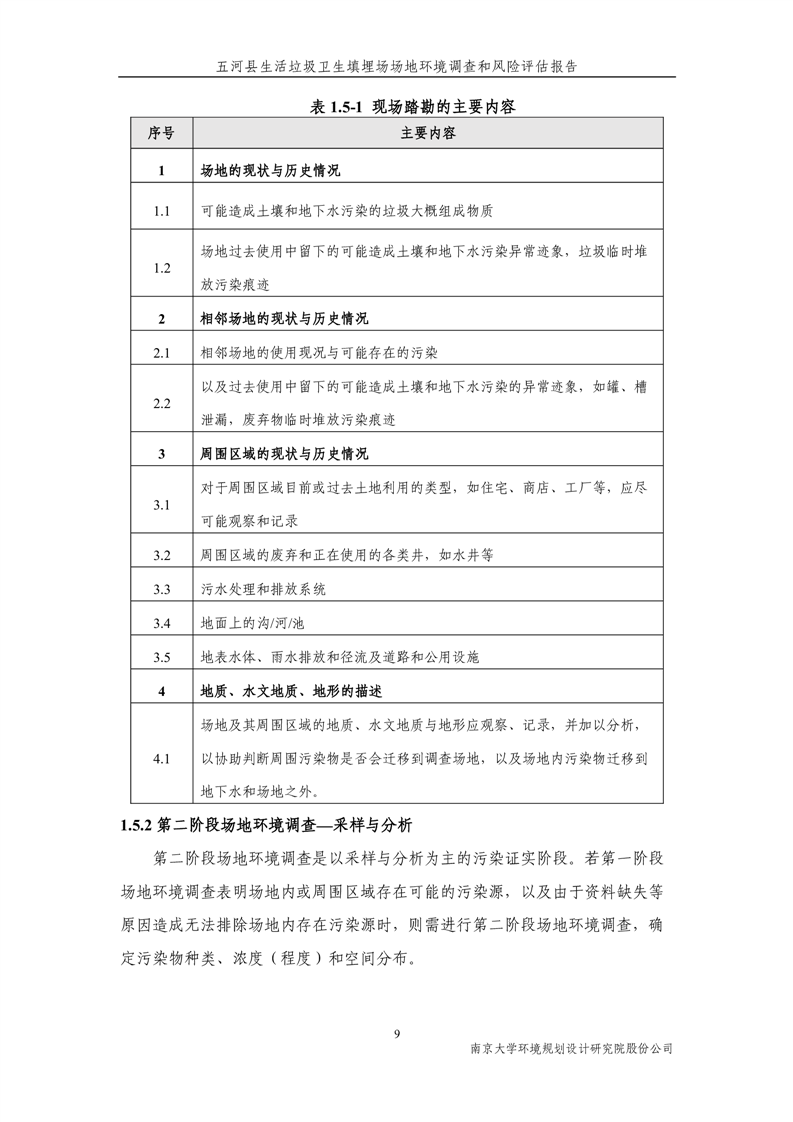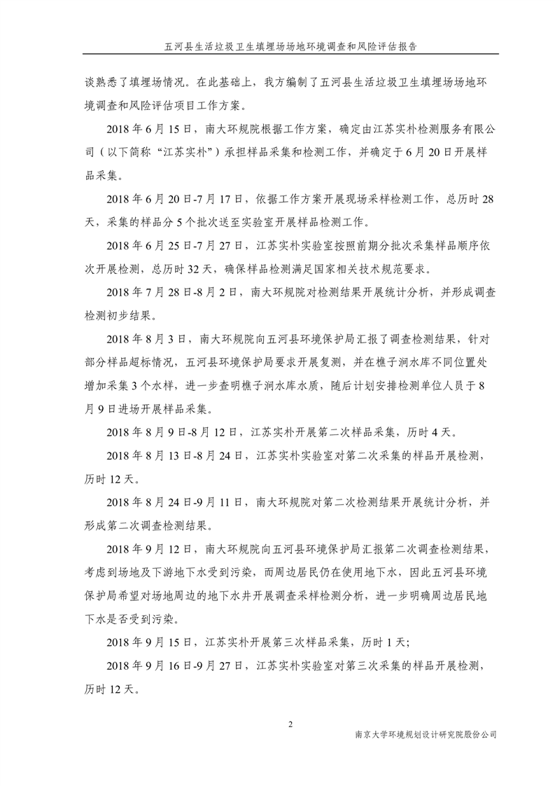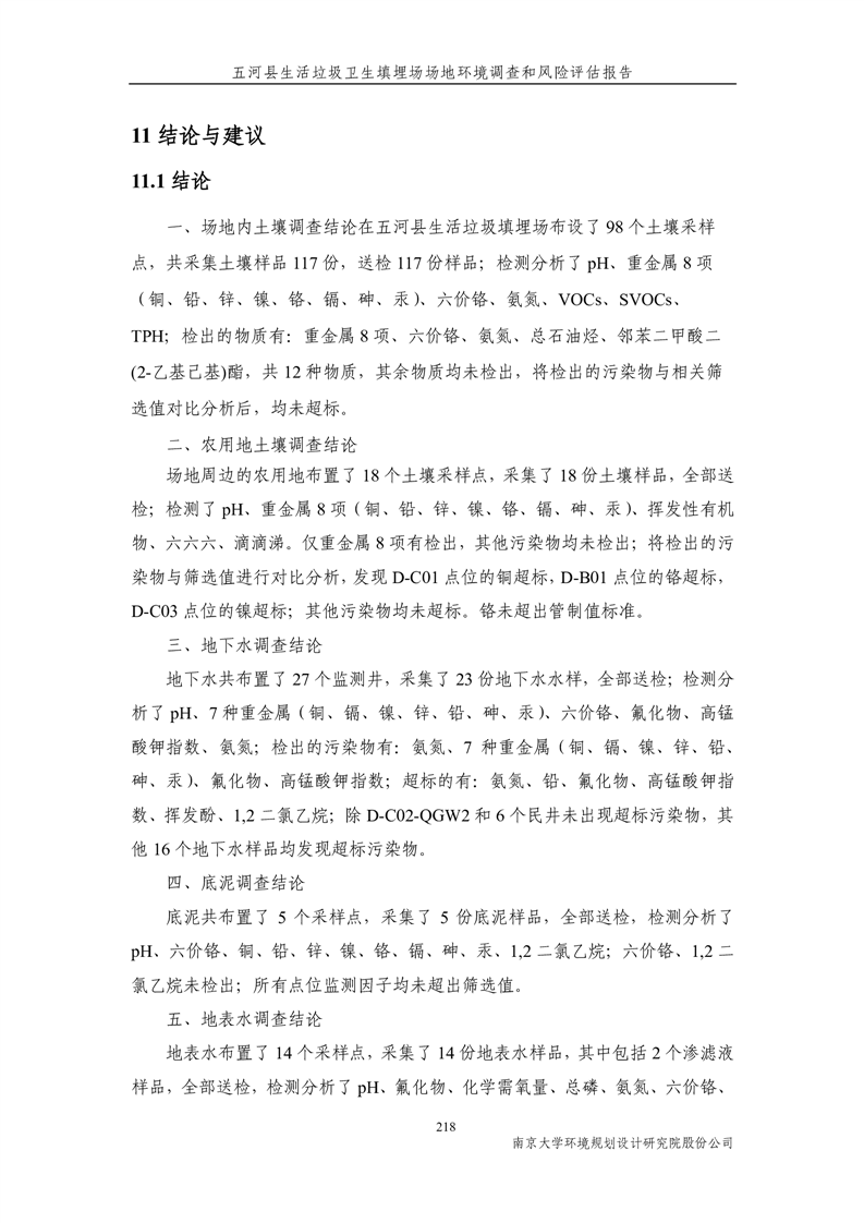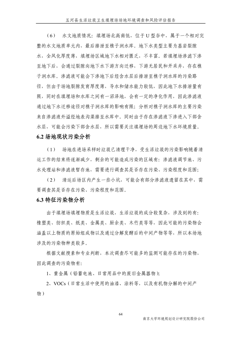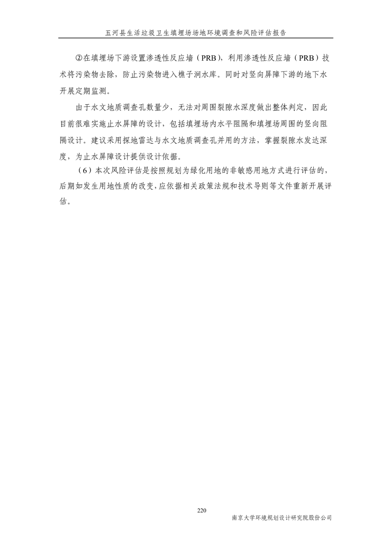 五河县生活垃圾卫生填埋场场地环境调查和风险评估报告