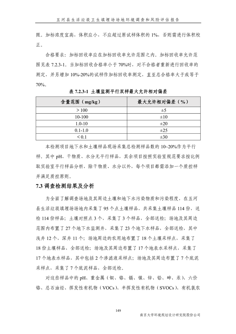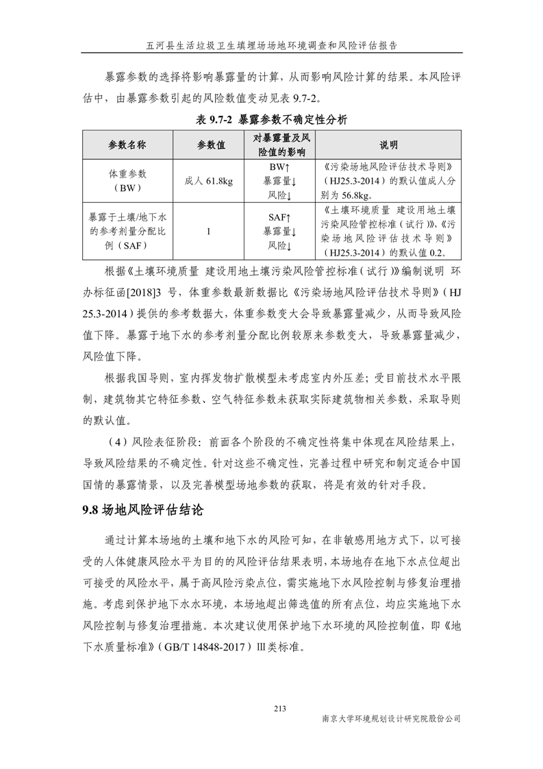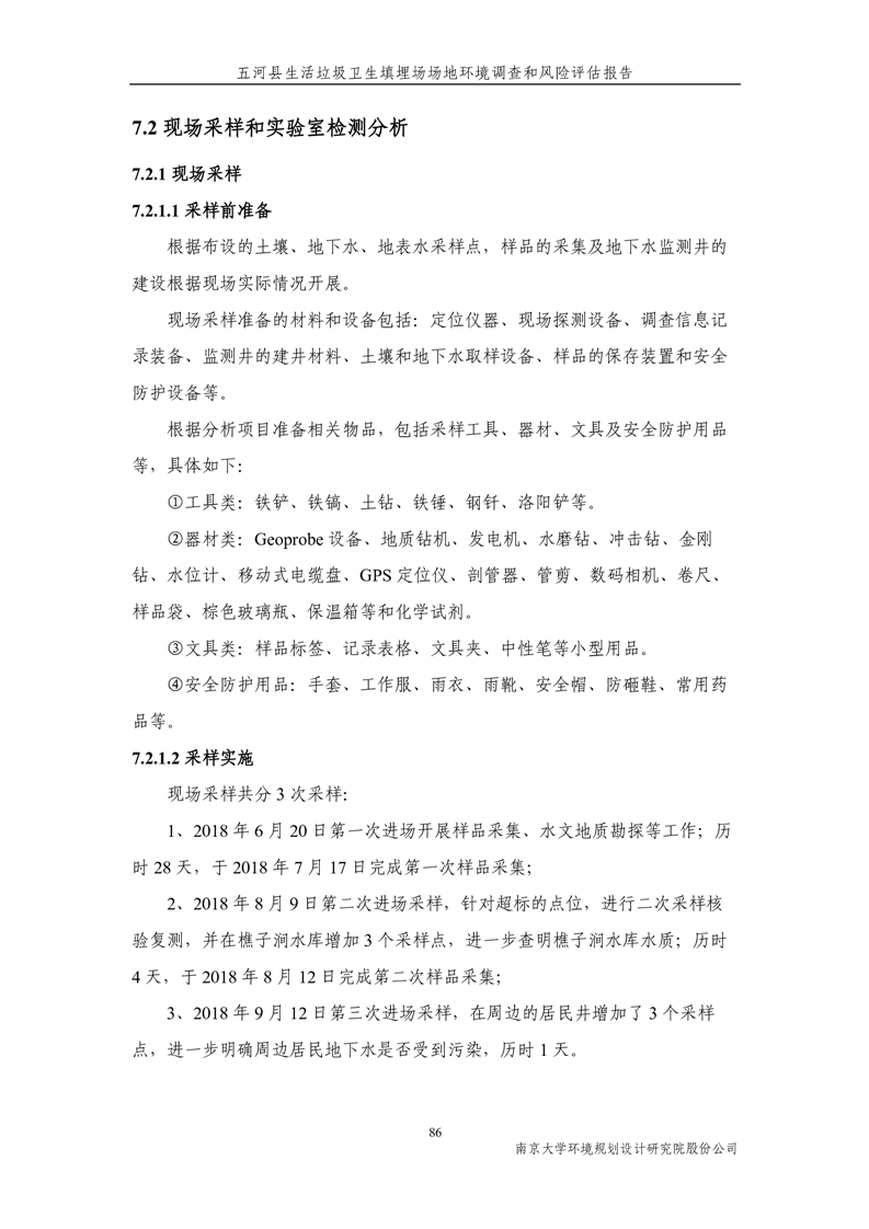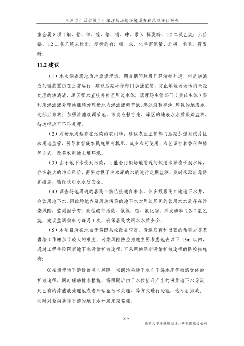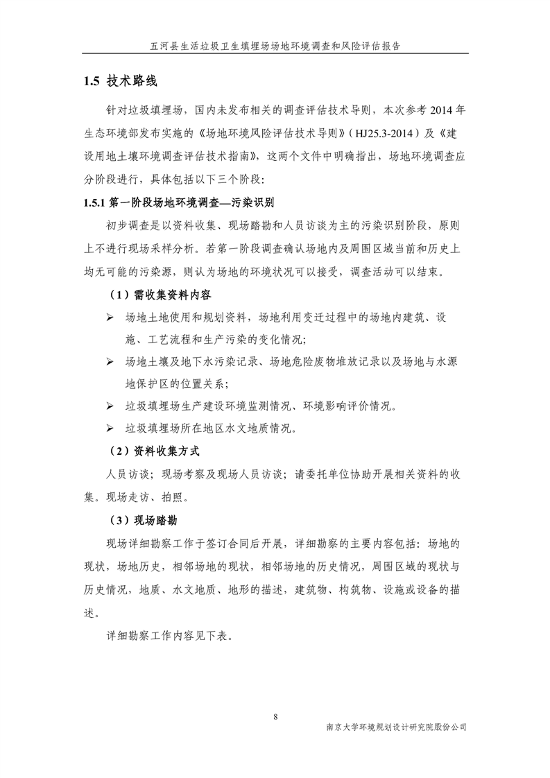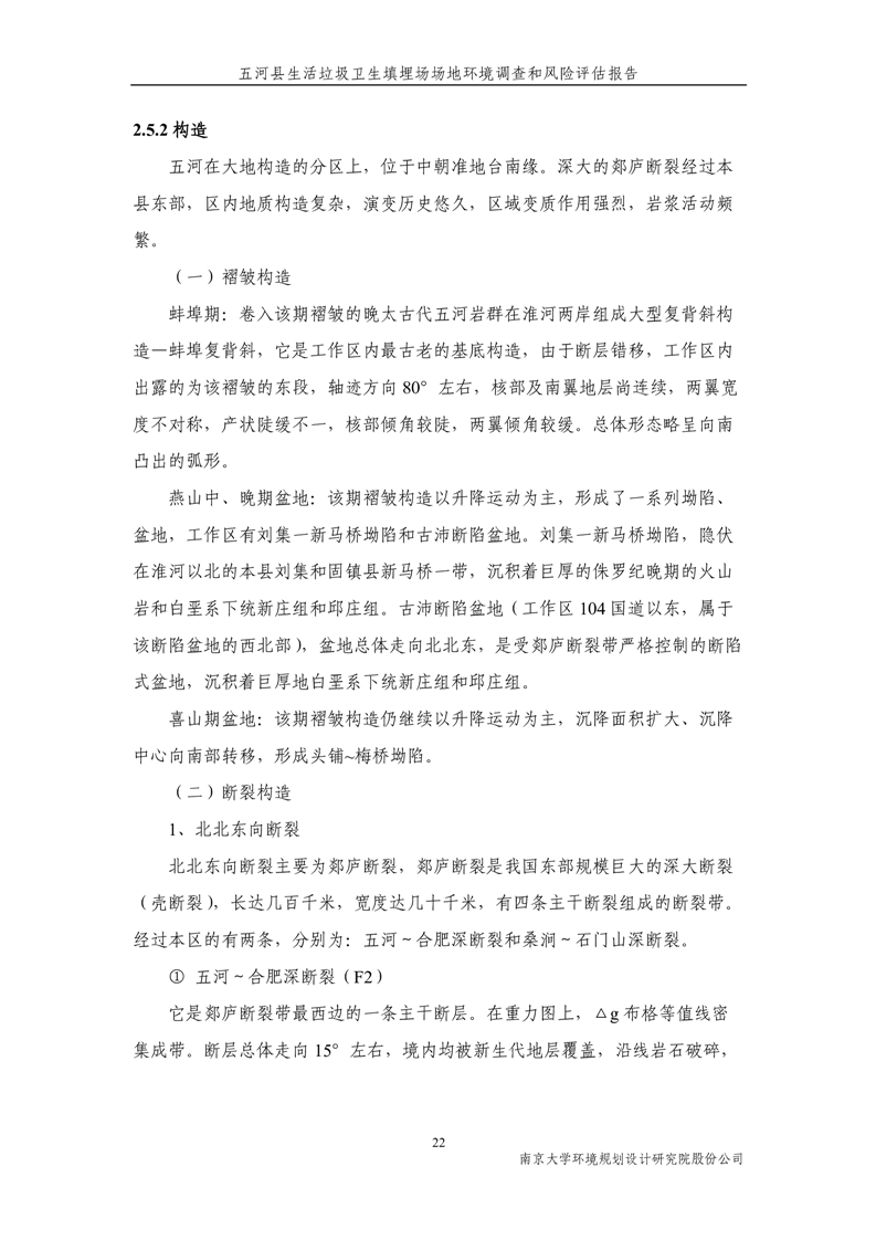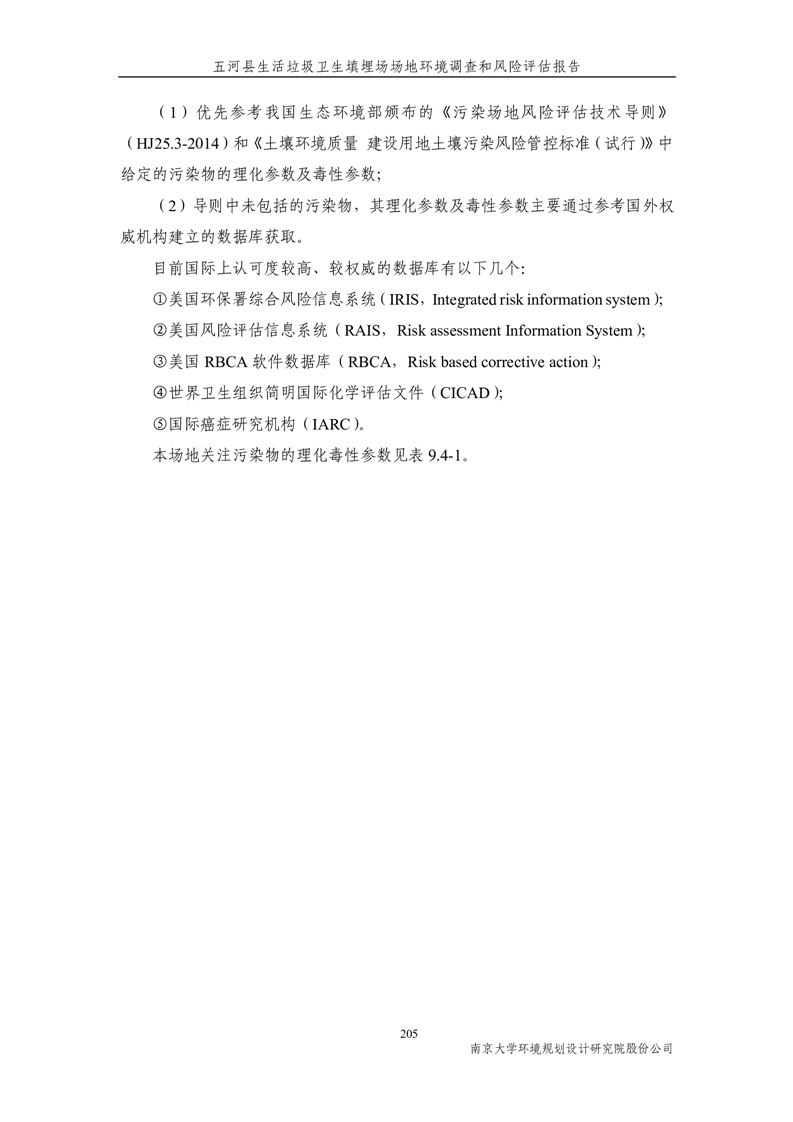 五河县生活垃圾卫生填埋场场地环境调查和风险评估报告