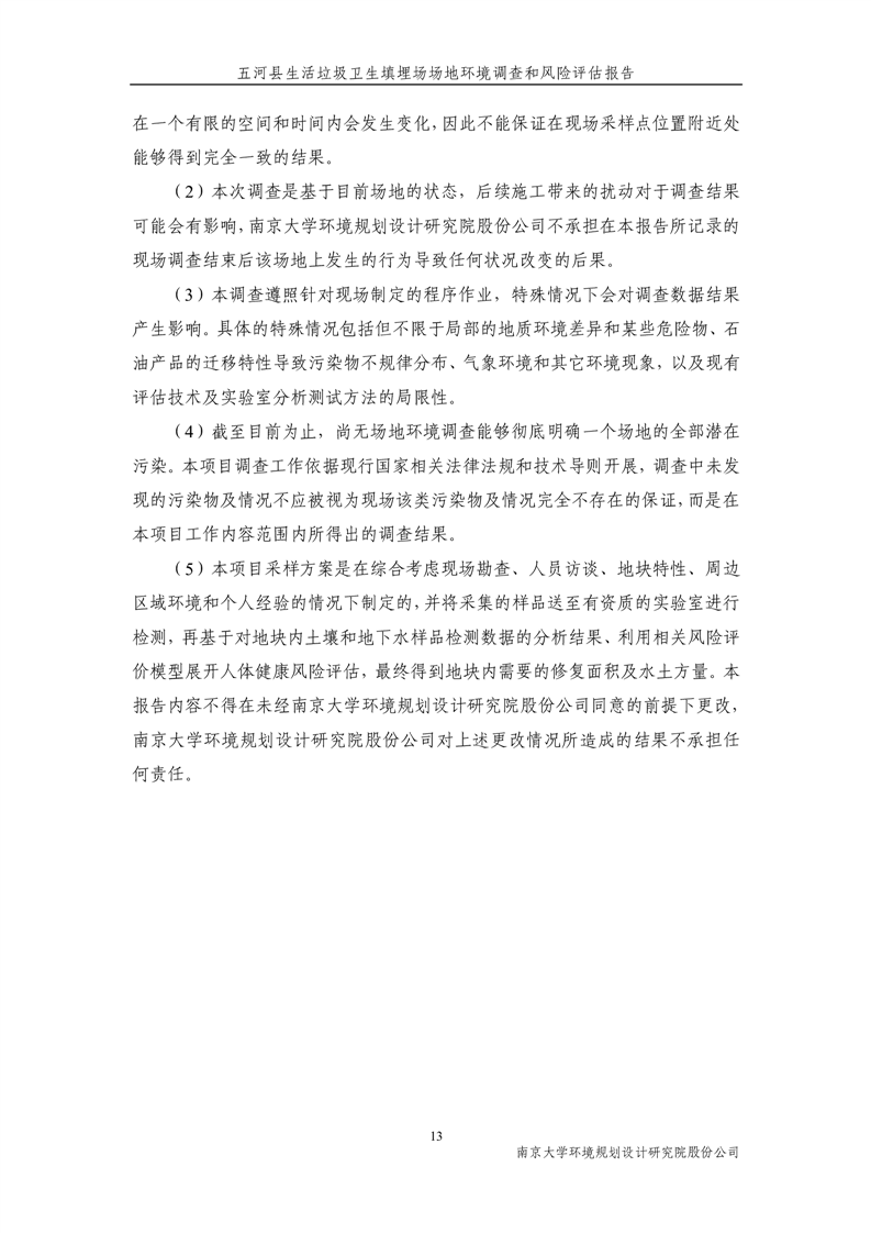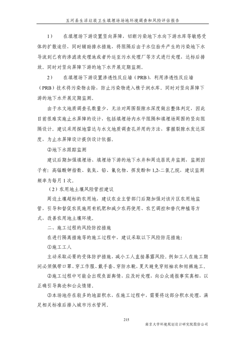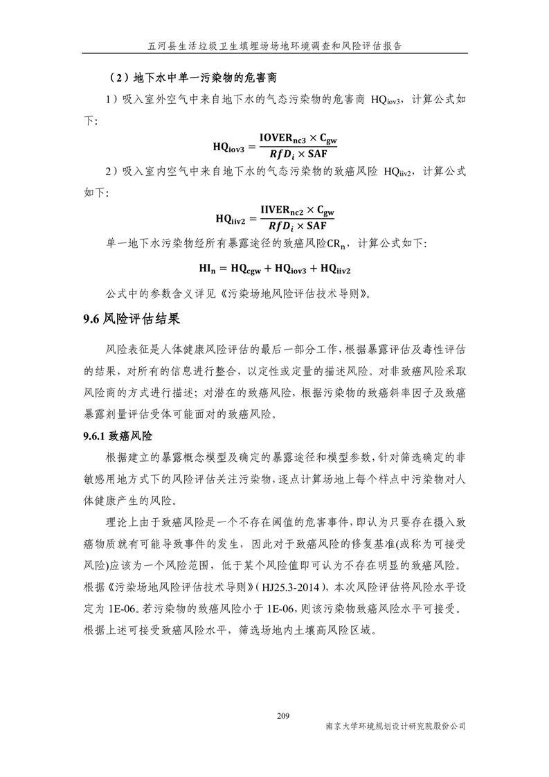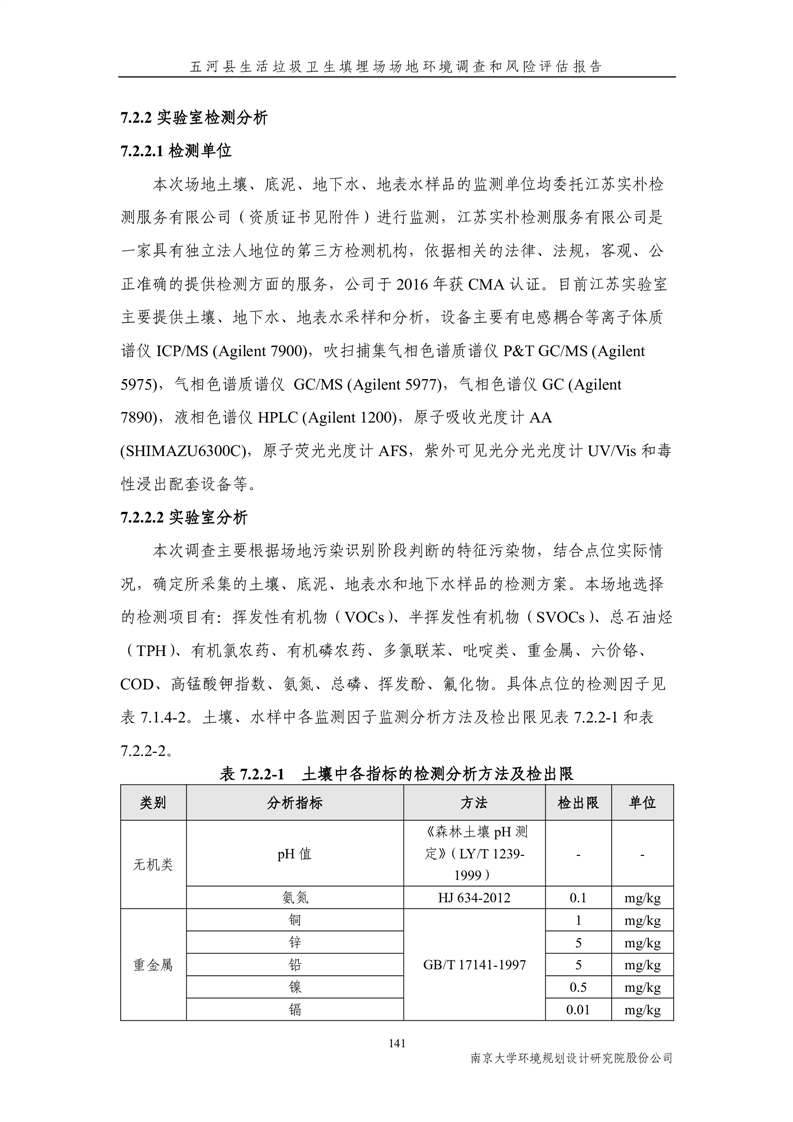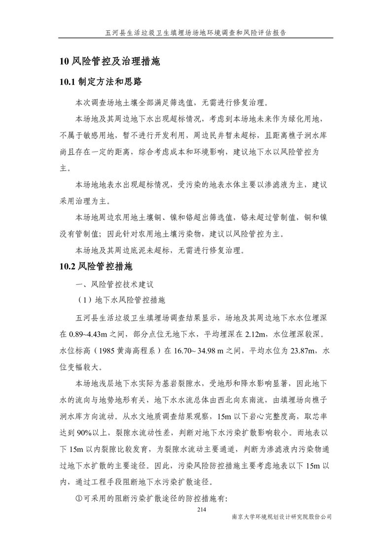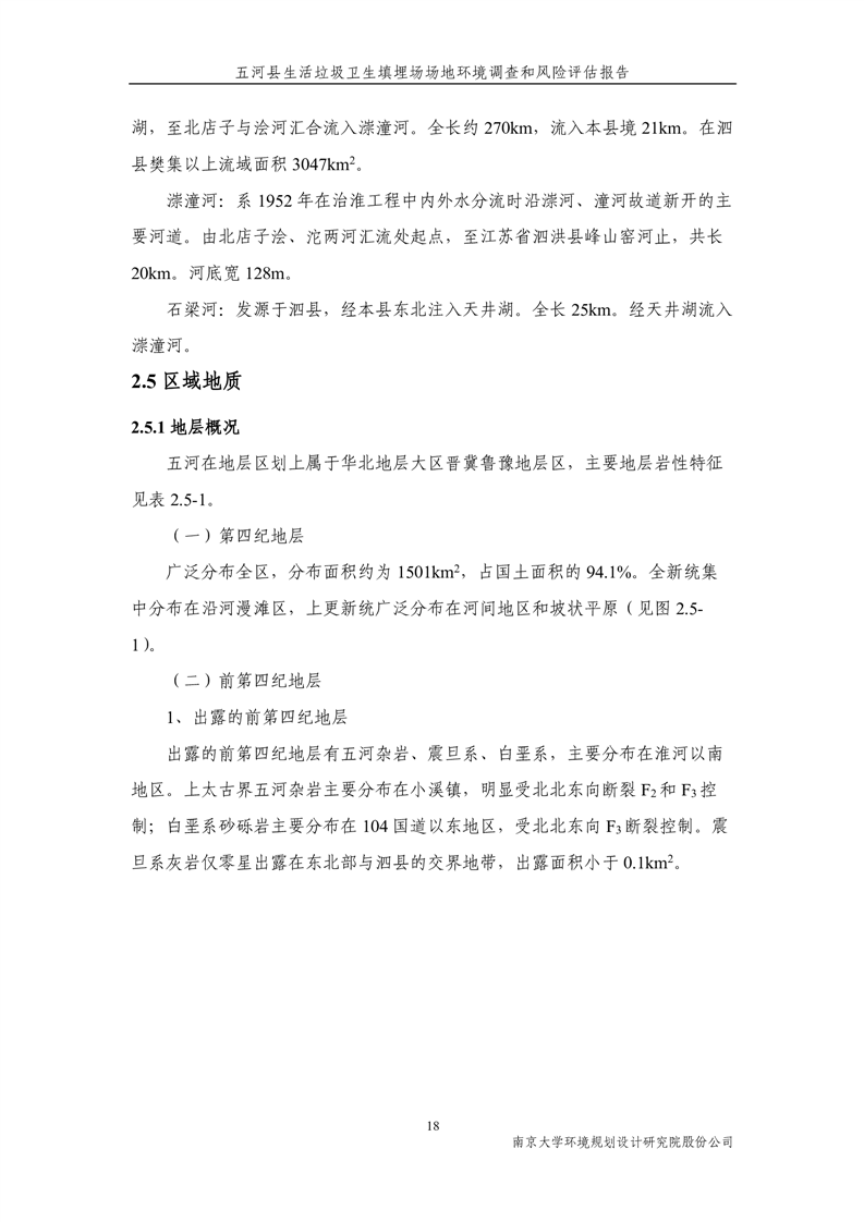 五河县生活垃圾卫生填埋场场地环境调查和风险评估报告