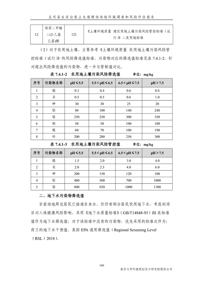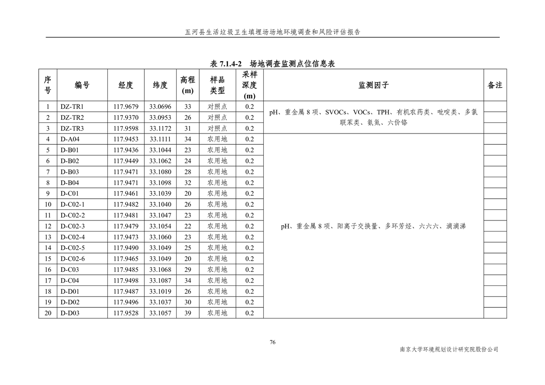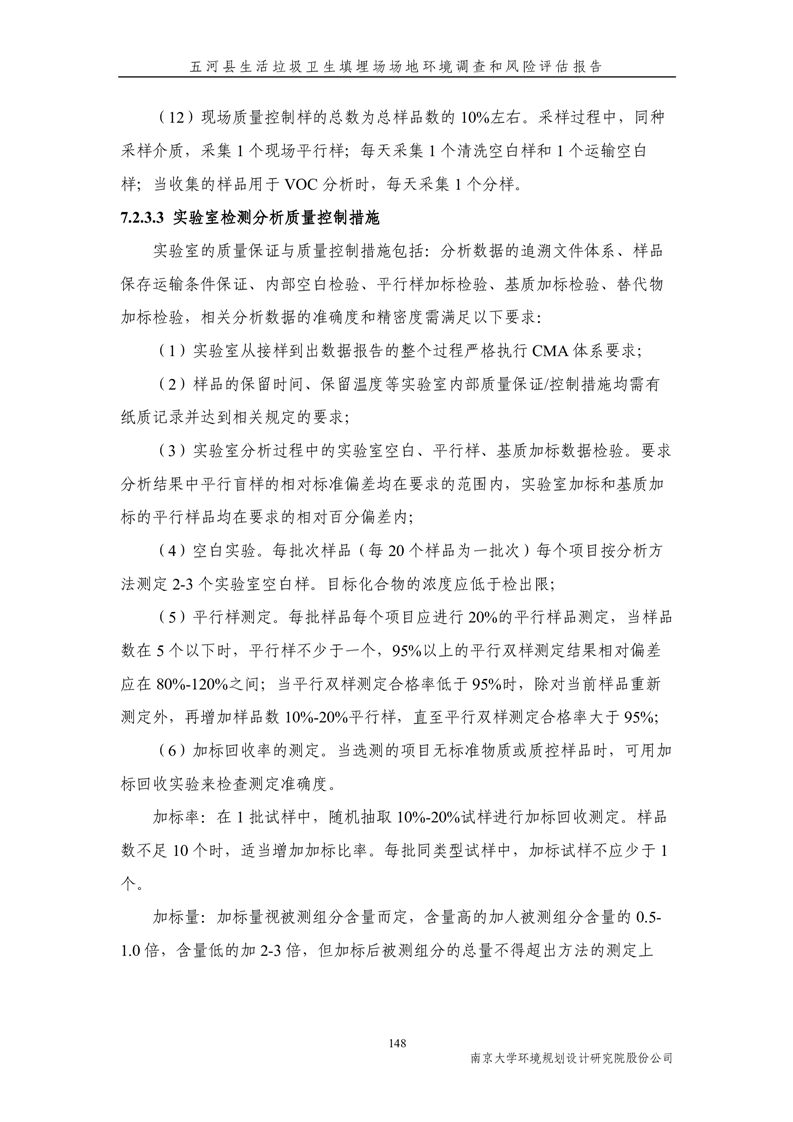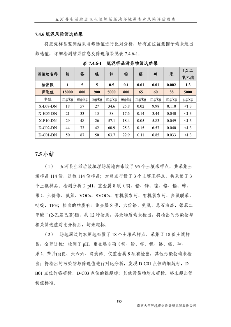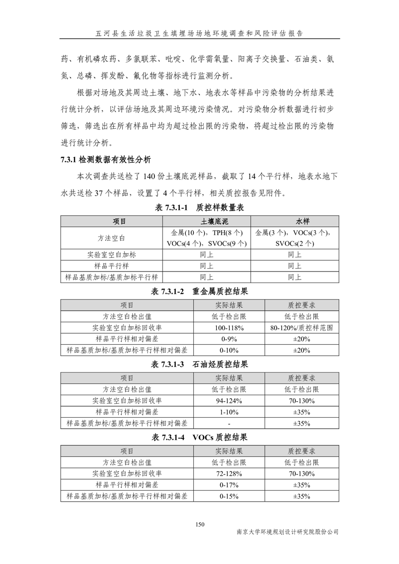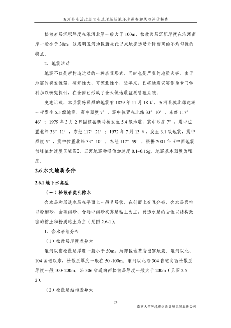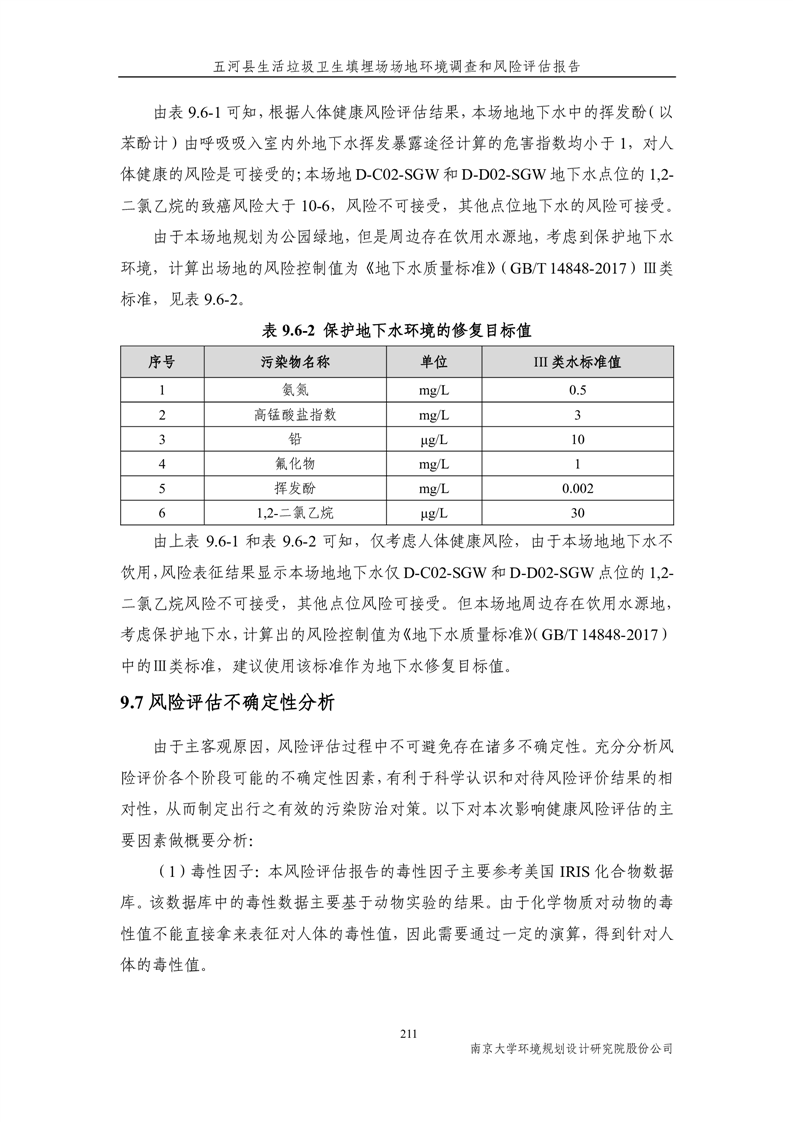 五河县生活垃圾卫生填埋场场地环境调查和风险评估报告