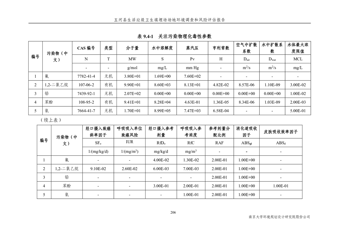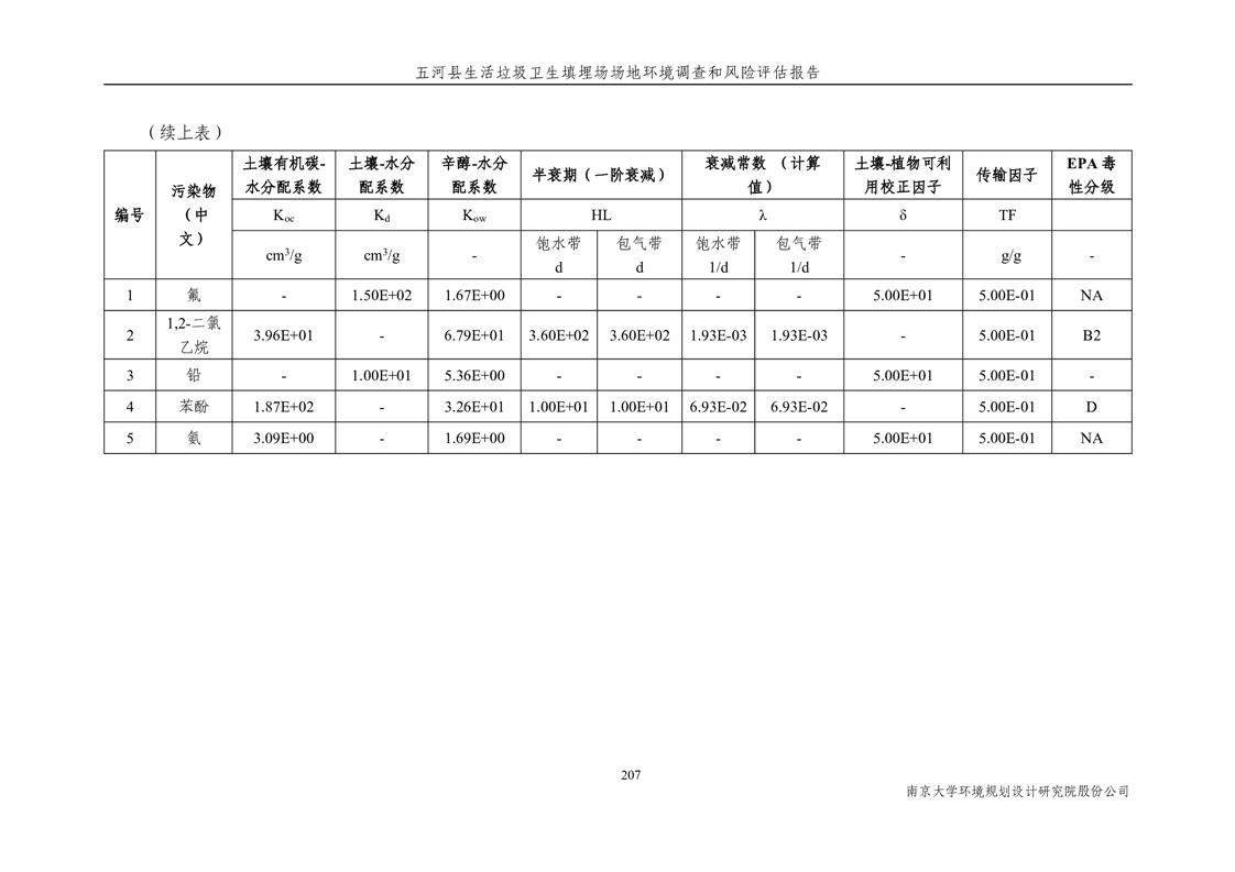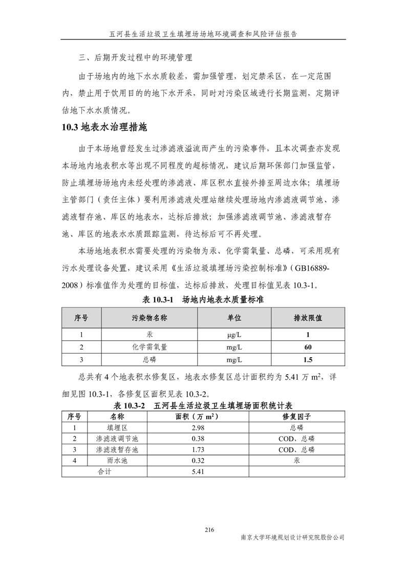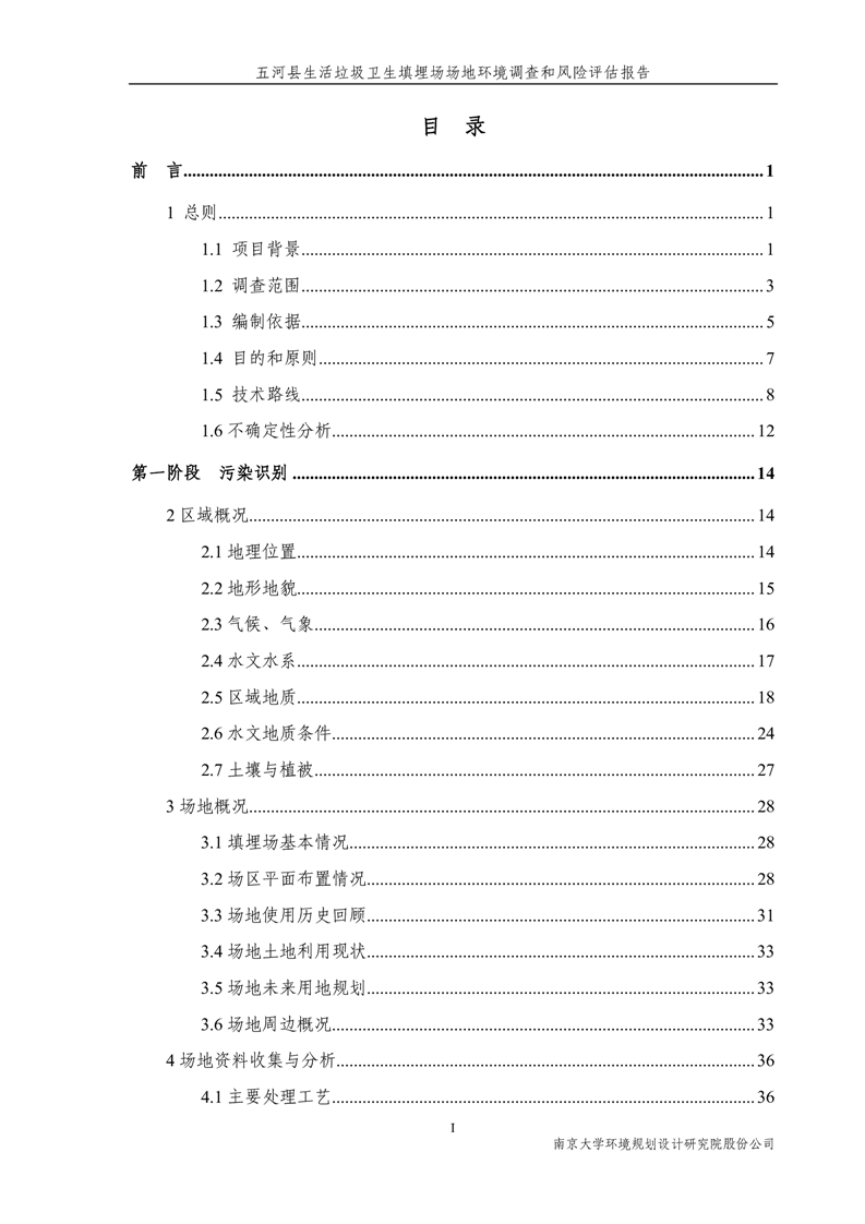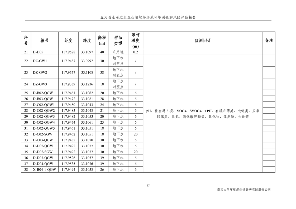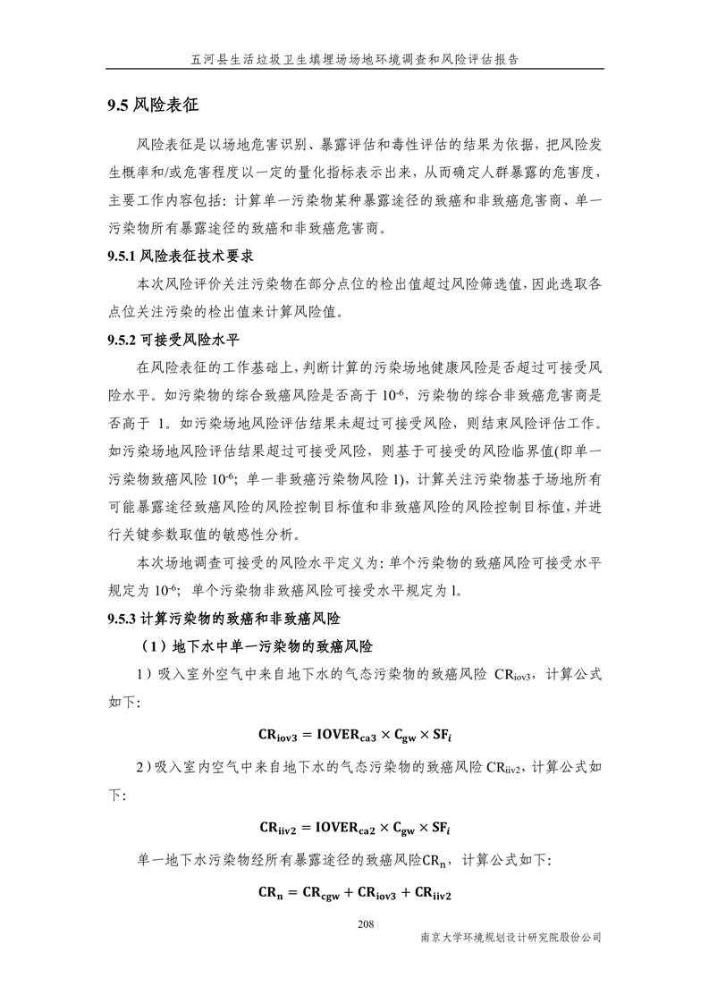 五河县生活垃圾卫生填埋场场地环境调查和风险评估报告