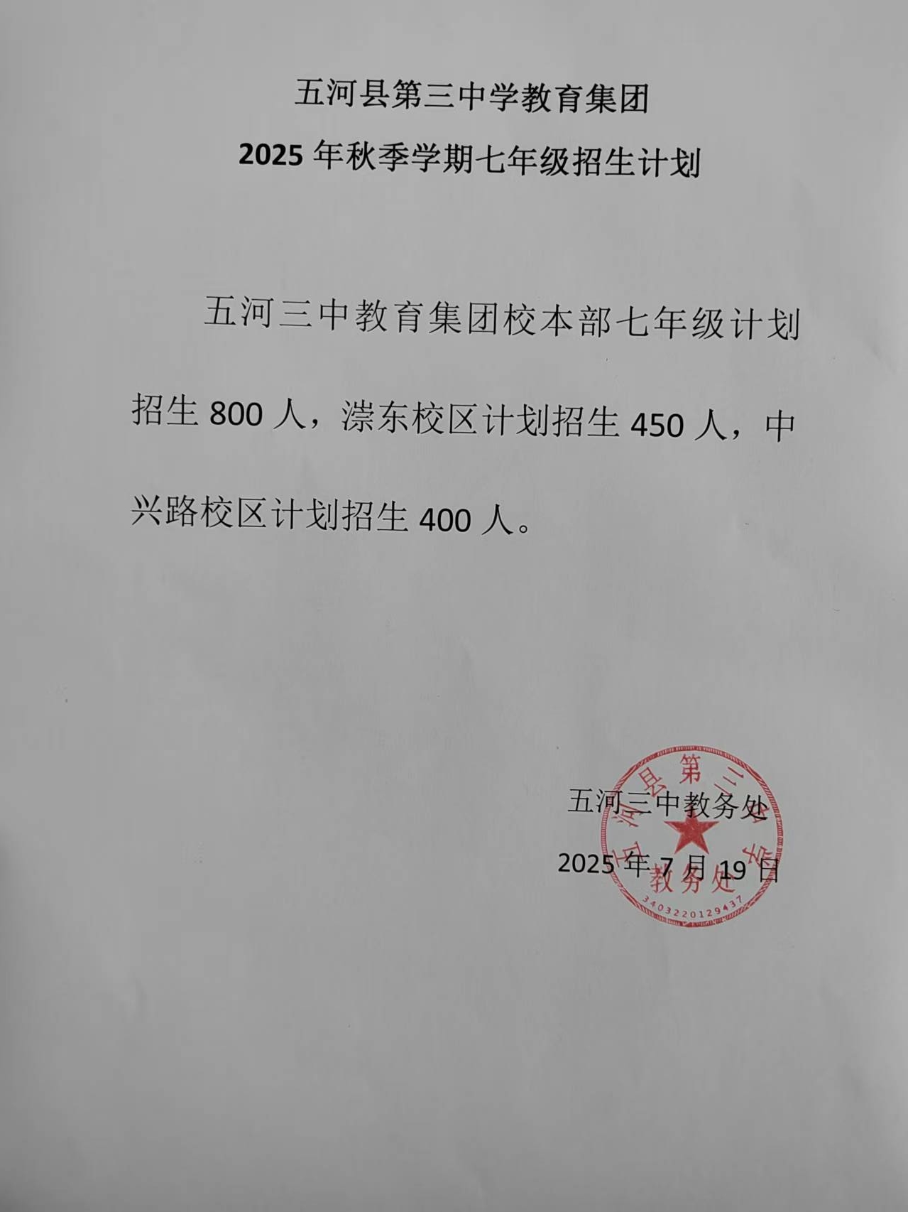 五河三中教育集团2025年秋季学期七年级招生计划 |