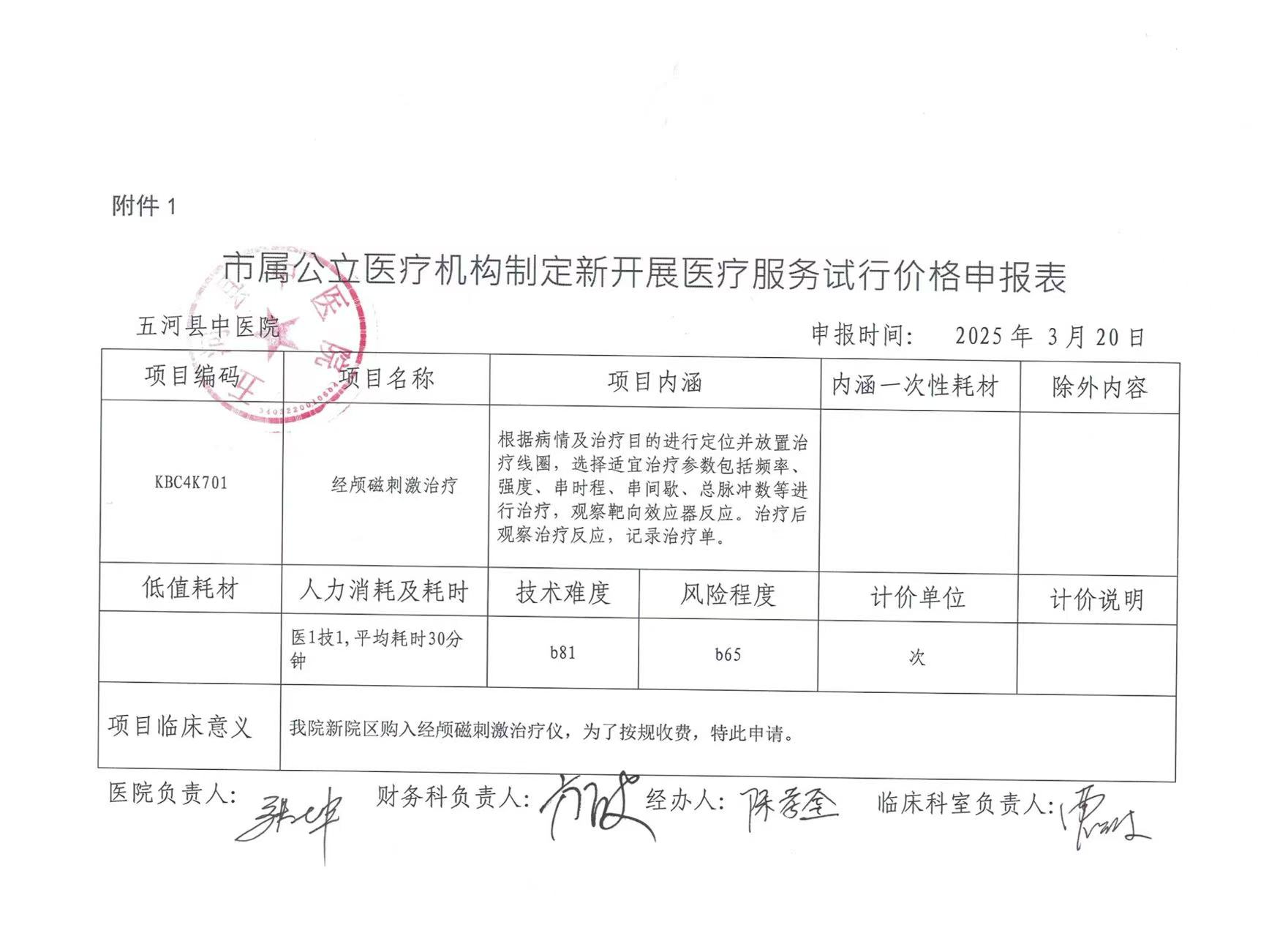 医疗机构制定新开展医疗服务试行价格申请表 |