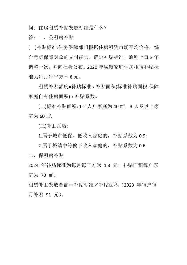 2024年住房租赁补贴发放标准 |