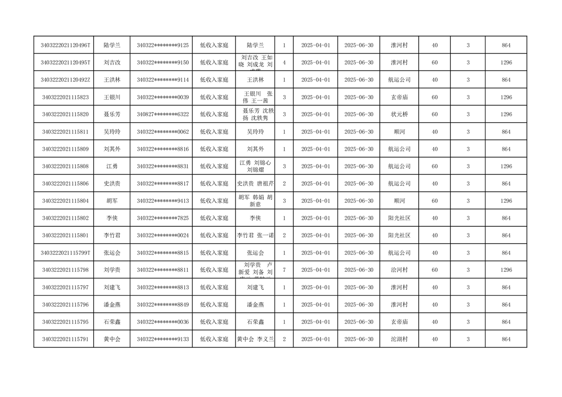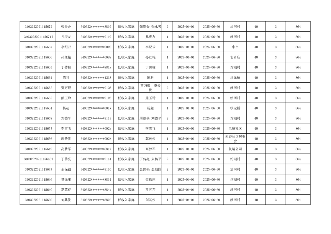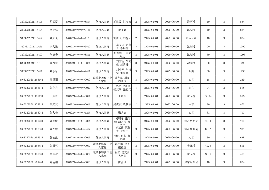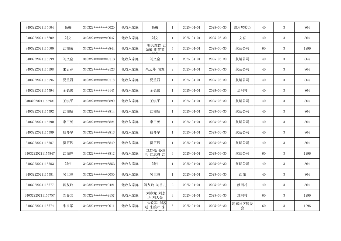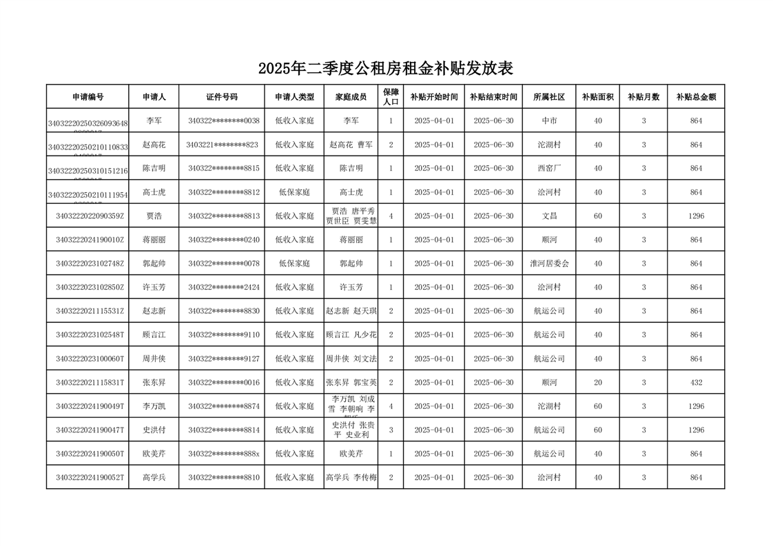 2025年二季度公租房租金补贴发放表 |