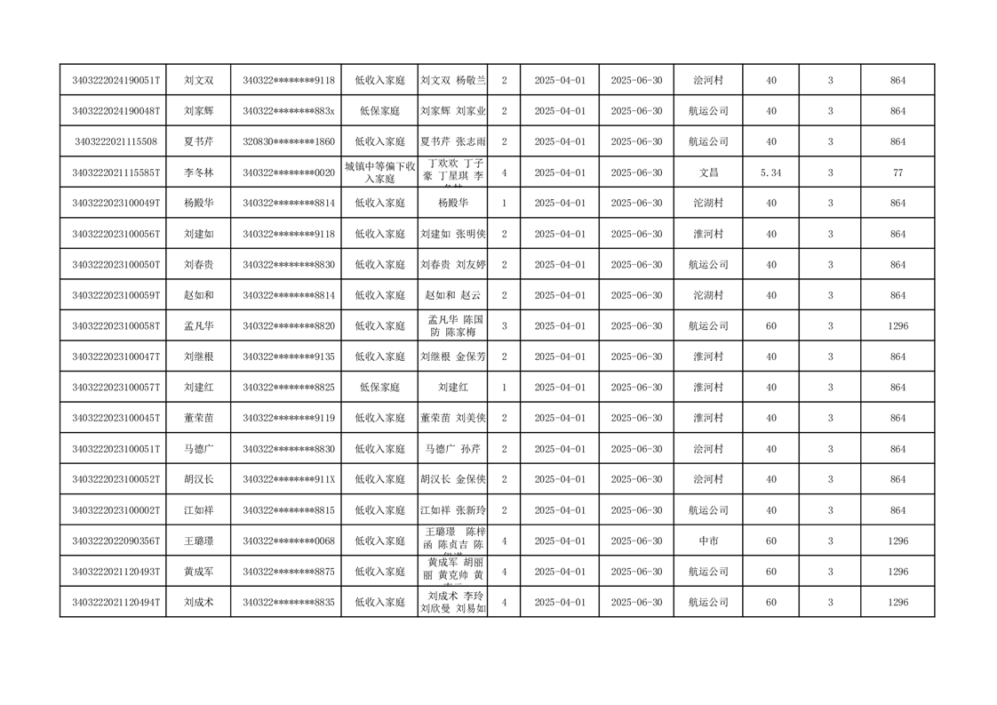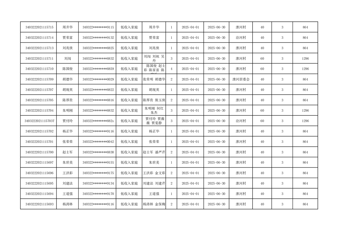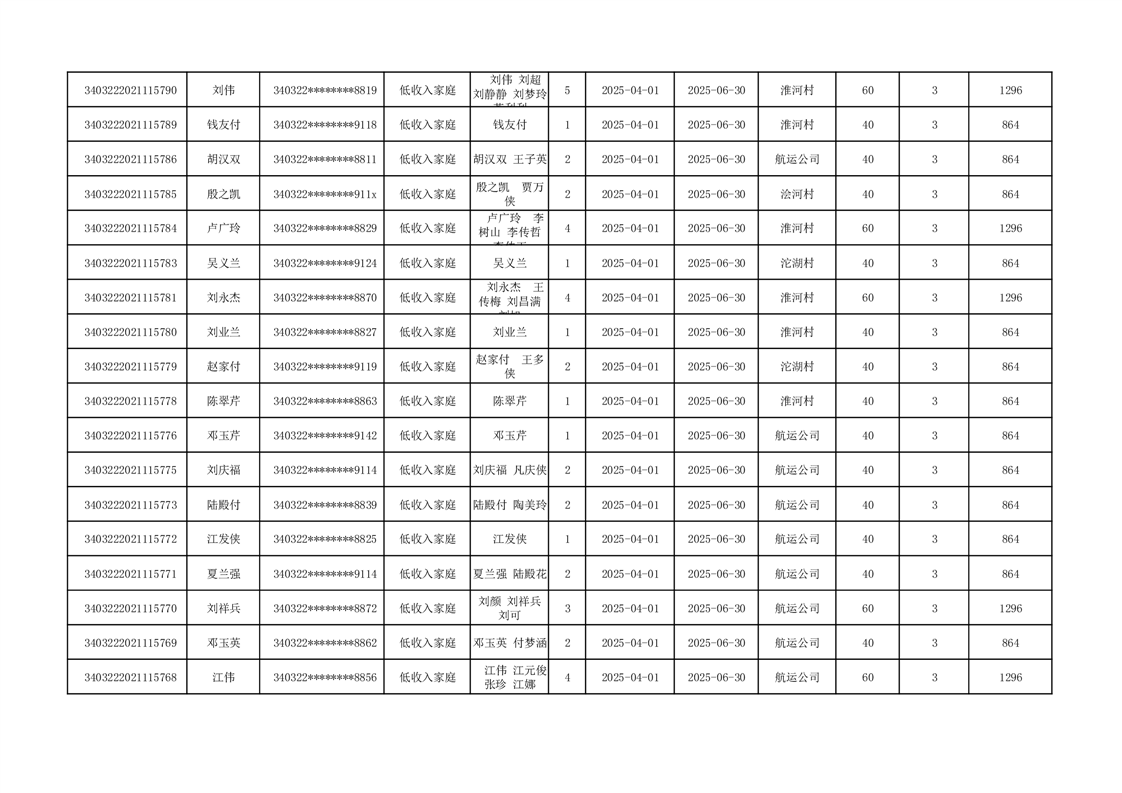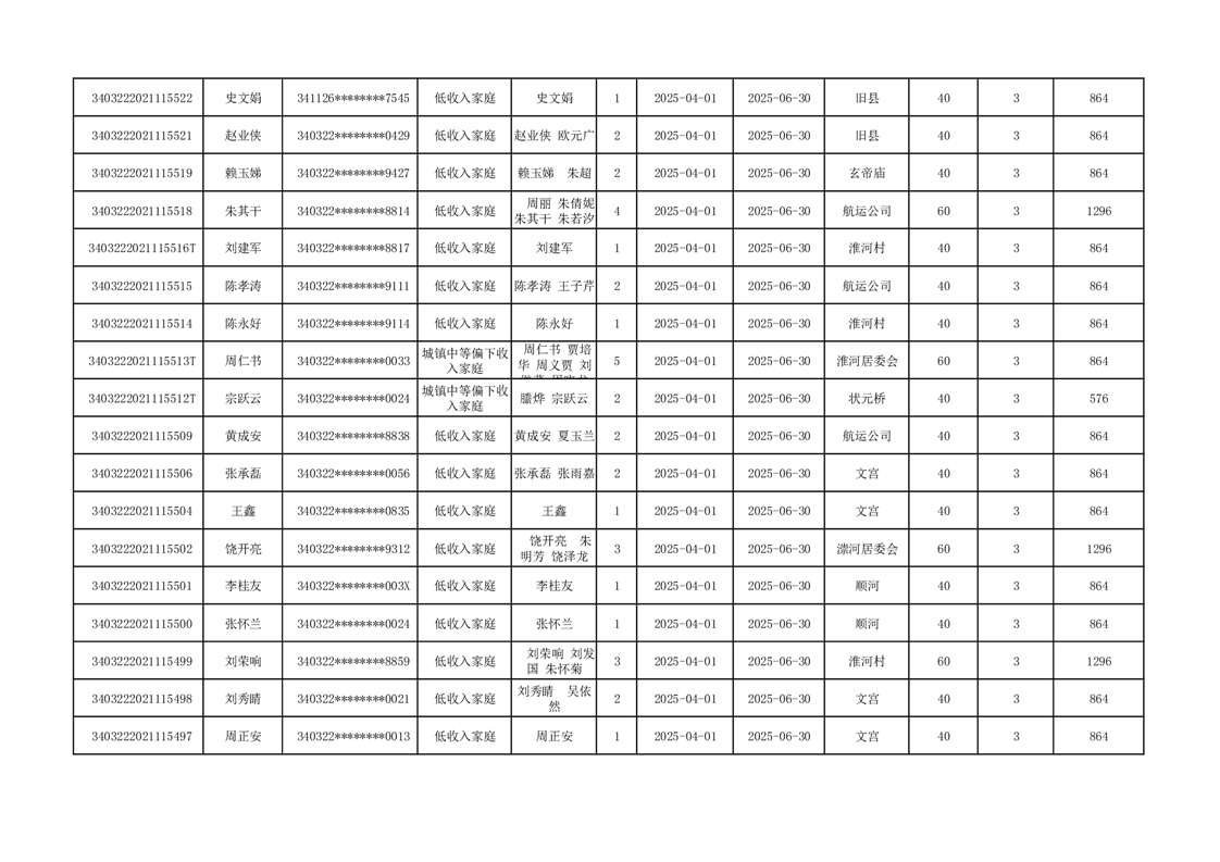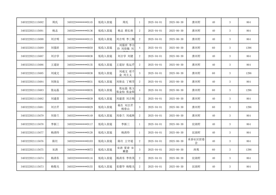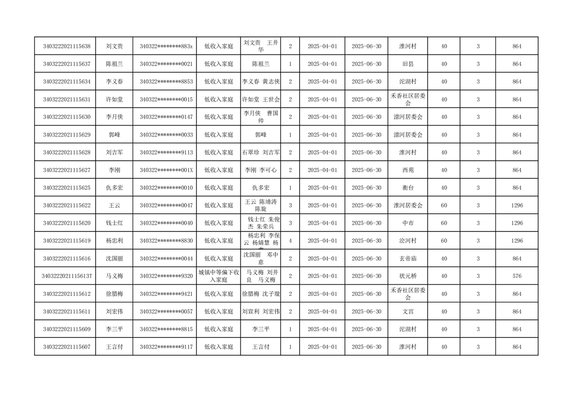 2025年二季度公租房租金补贴发放表 |