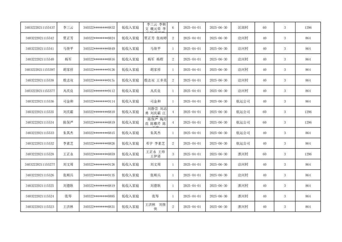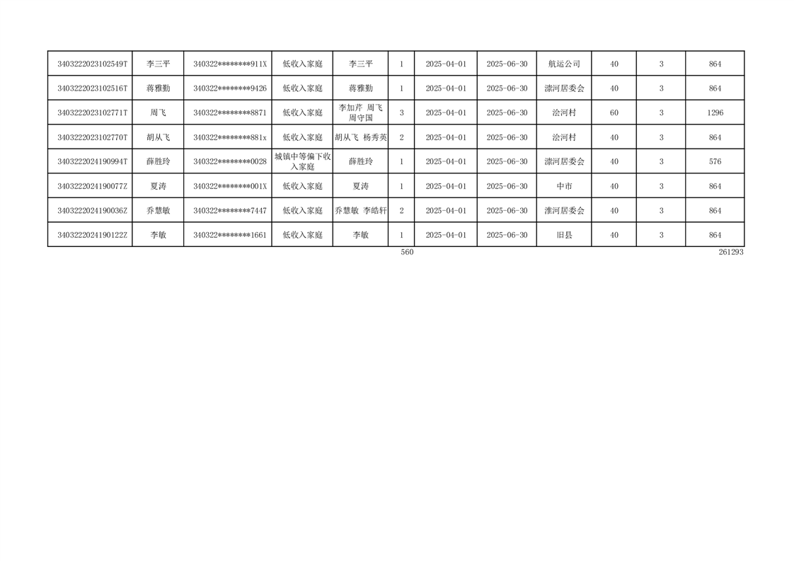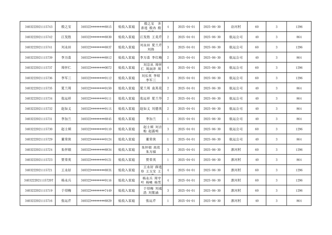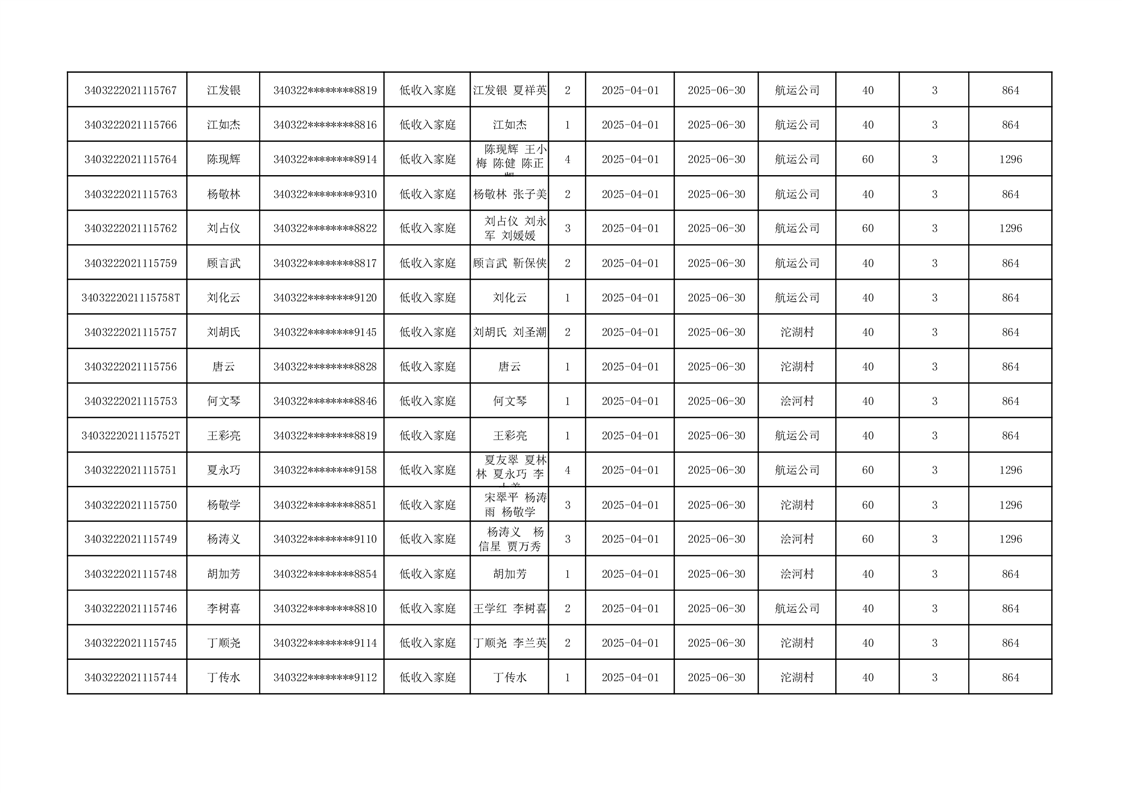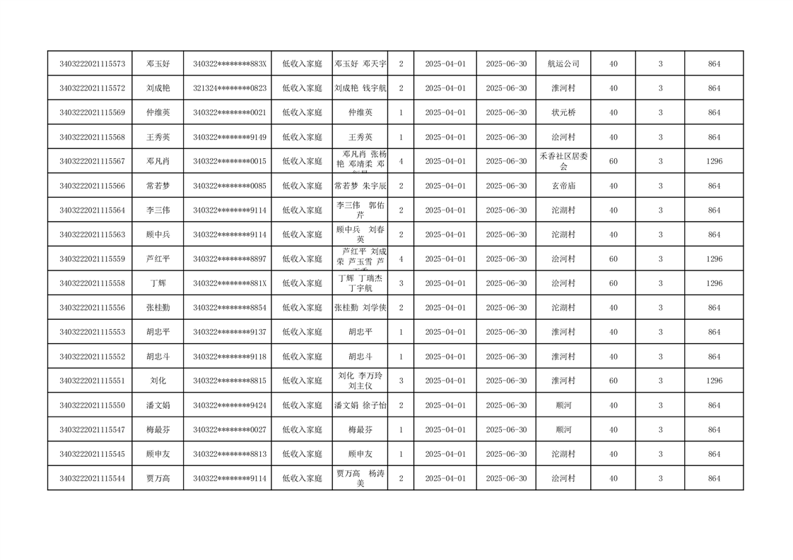 2025年二季度公租房租金补贴发放表 |