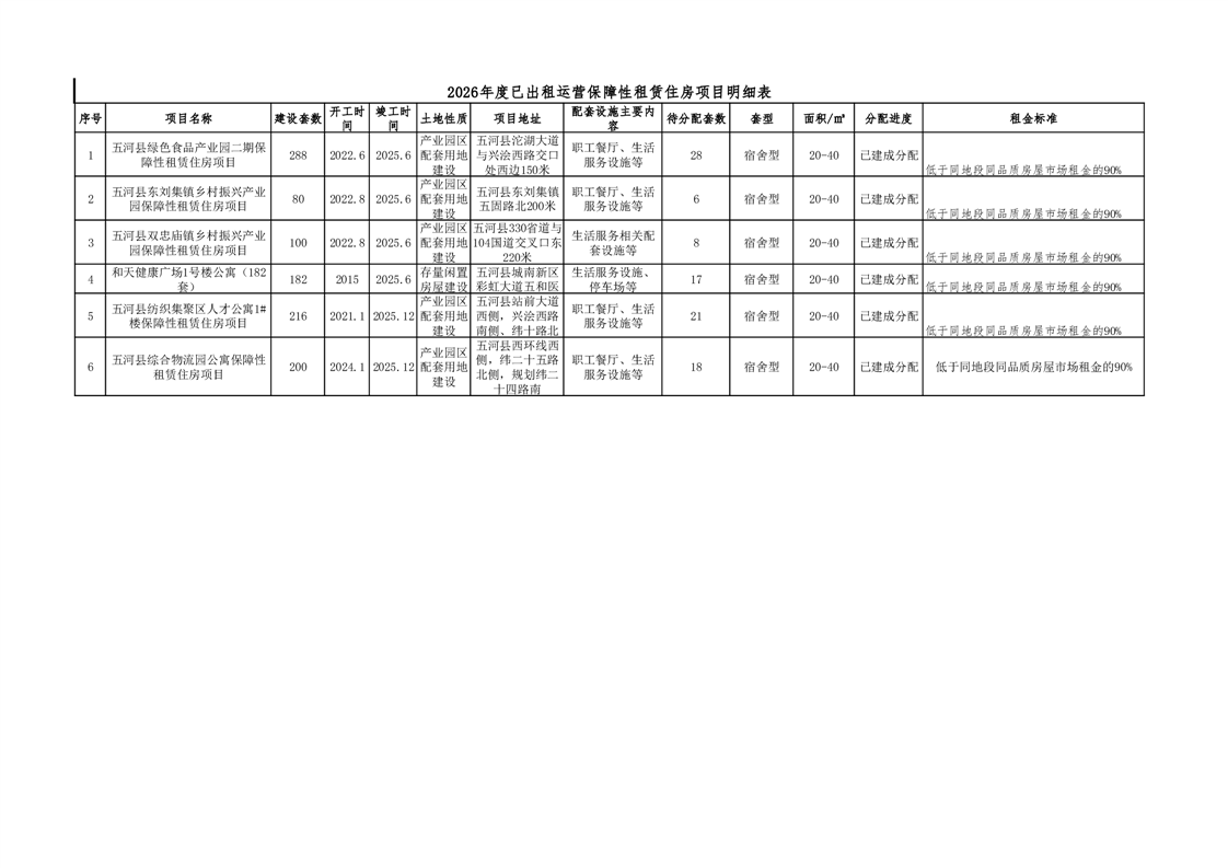 2026年度已出租运营保障性租赁住房项目明细表 |