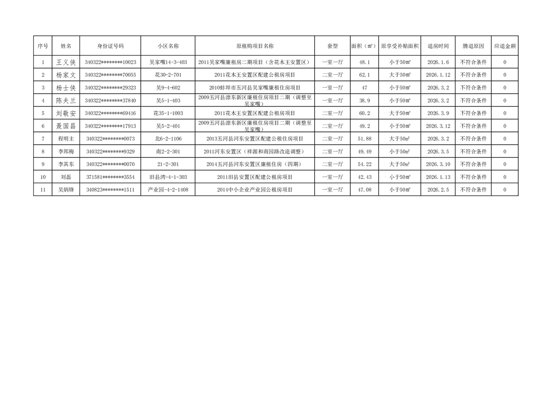 2026年第一季度不符合条件退房表