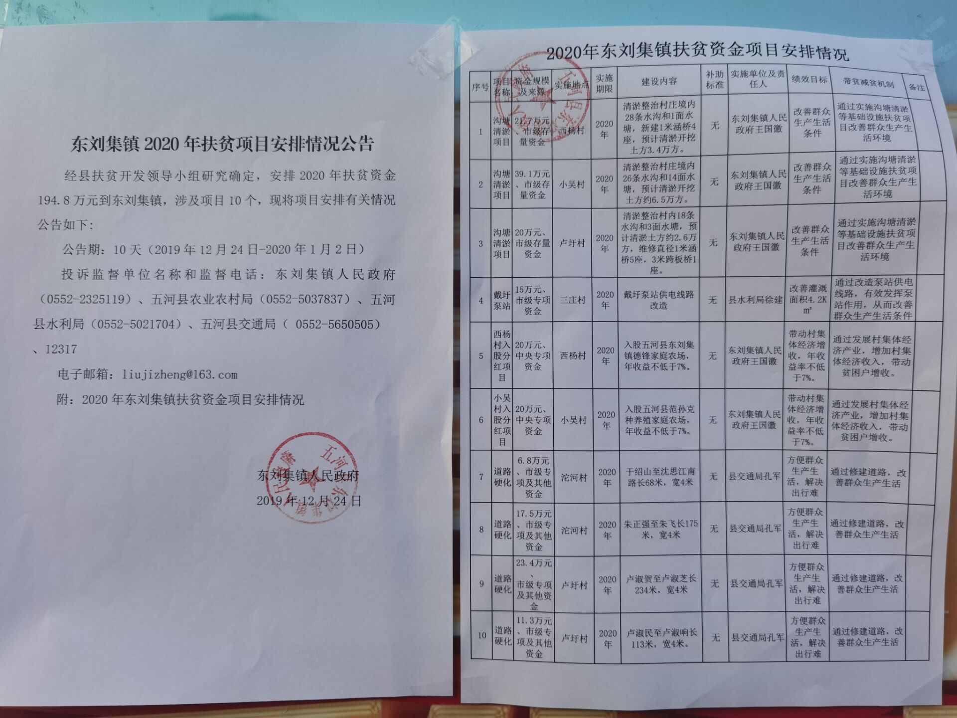 东刘集镇2020年扶贫项目安排情况公告 |