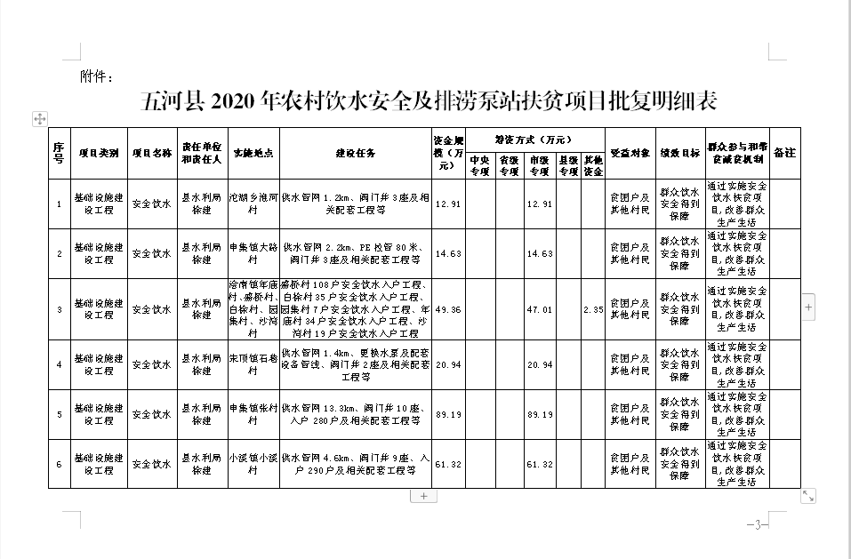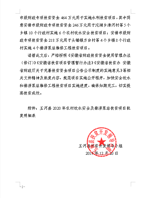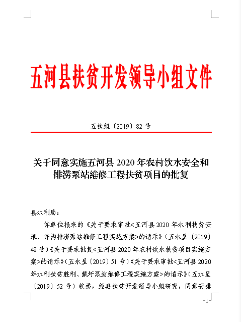 关于同意实施五河县2020年农村饮水安全和排涝泵站维修工程扶贫项目的批复
