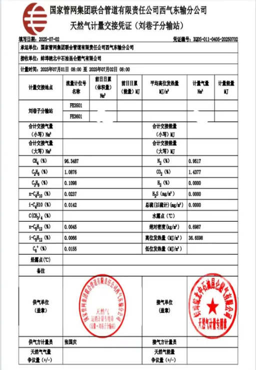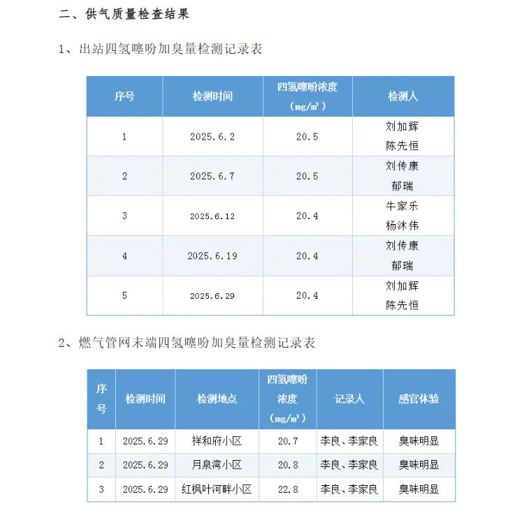 五河中裕燃气2025年6月供气质量和气压报告 |